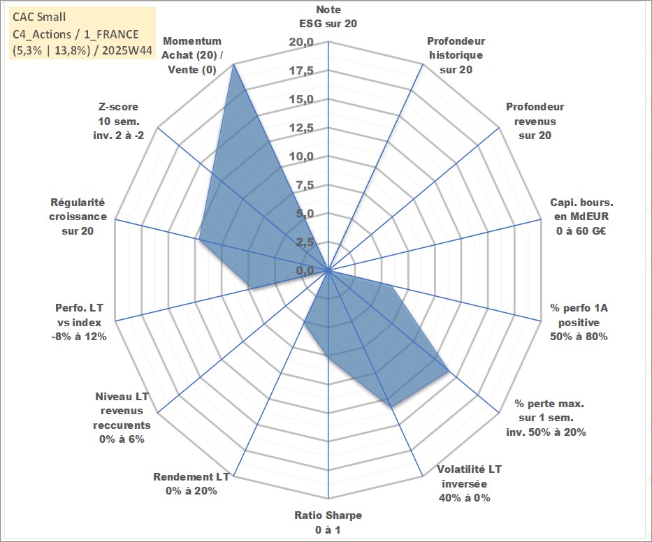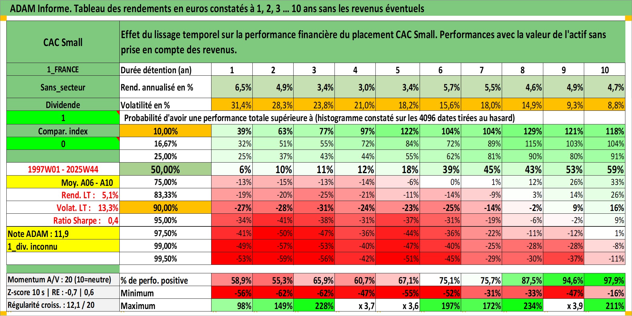 Site dédié aux investisseursPage dédiée sur site financeAnalyse des valorisations hebdomadaires de l'actif CAC Small. Cet actif est cote en EUR. Les valorisations couvrent les semaines 1997W01 a 2025W44. Les revenus de cet actif financier ne sont pas connus car non existants ou non disponibles sur le site Yahoo Finance. La note ESG de cet actif n'est pas connue.