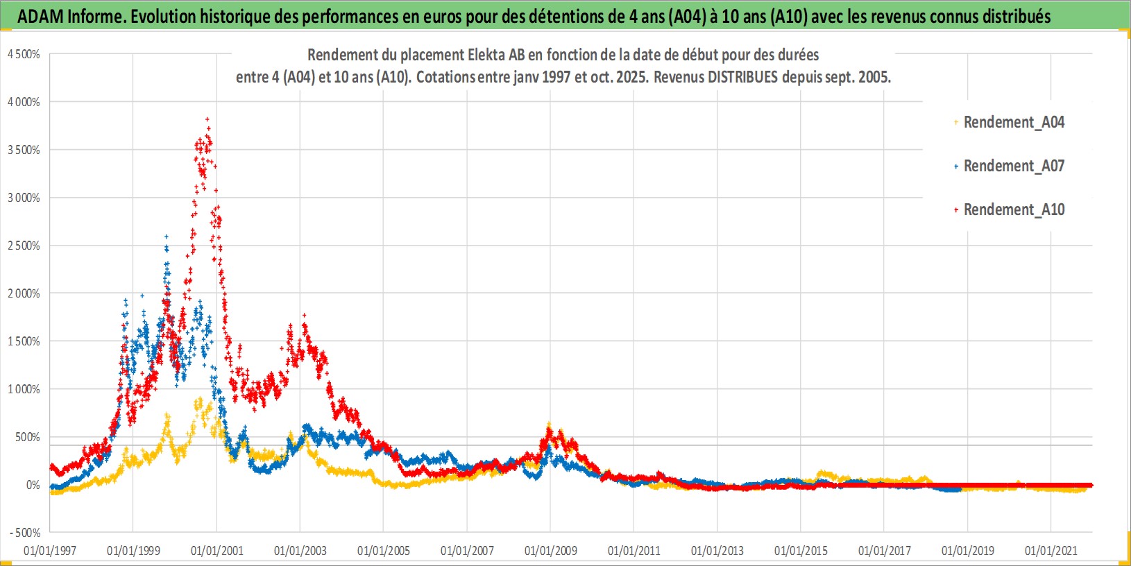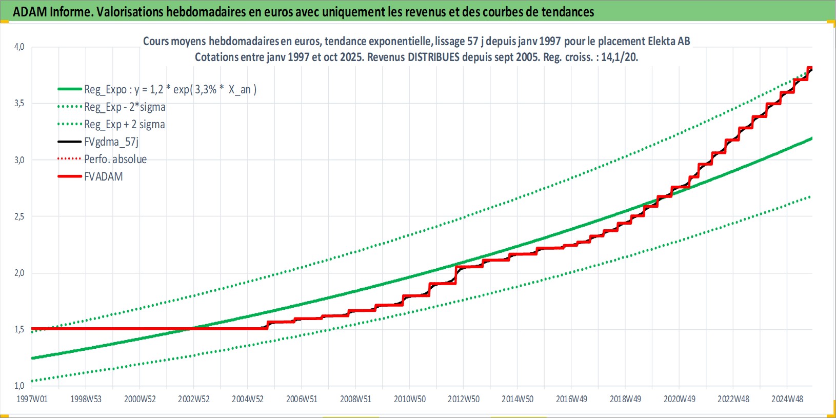 Site dédié aux investisseursPage dédiée sur site financeAnalyse des valorisations hebdomadaires de l'action Elekta AB. Cet actif est cote en SEK. Les valorisations sont en contrevaleur EURO et couvrent les semaines 1997W01 a 2025W44. Les revenus de cet actif financier sont pris en compte depuis la semaine 2005W38. La note ESG de cet actif n'est pas connue.