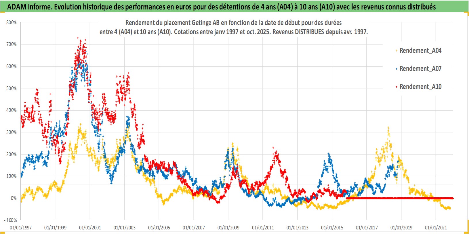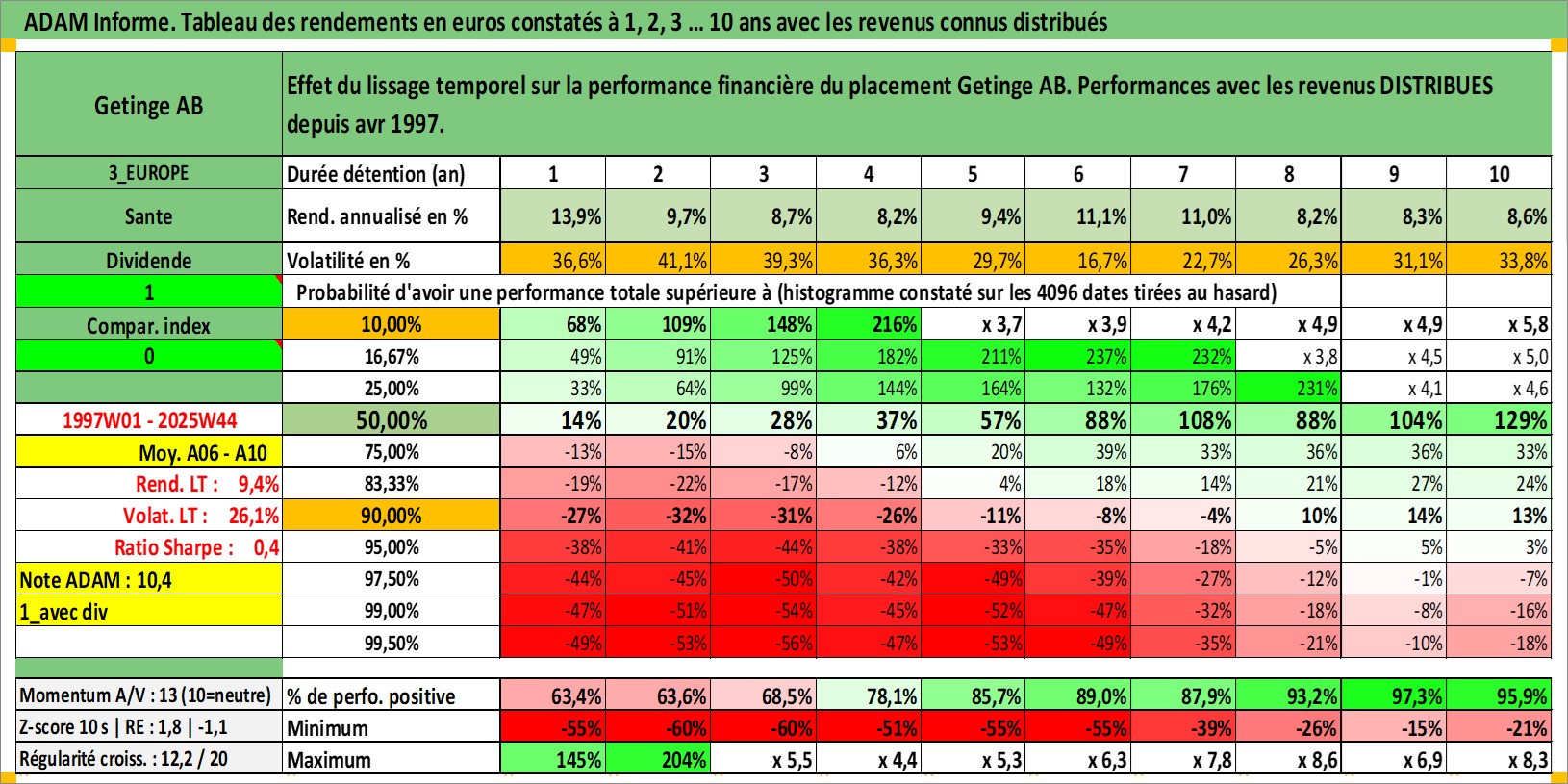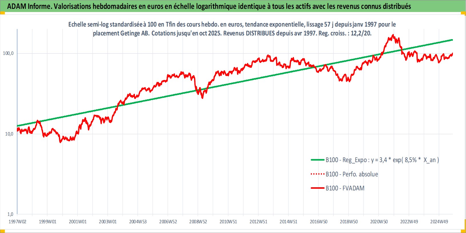 Site dédié aux investisseursPage dédiée sur site financeAnalyse des valorisations hebdomadaires de l'action Getinge AB. Cet actif est cote en SEK. Les valorisations sont en contrevaleur EURO et couvrent les semaines 1997W01 a 2025W44. Les revenus de cet actif financier sont pris en compte depuis la semaine 1997W18. La note ESG de cet actif n'est pas connue.