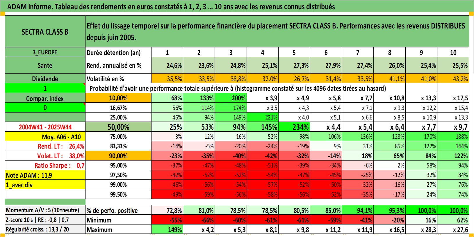 Site dédié aux investisseursPage dédiée sur site financeAnalyse des valorisations hebdomadaires de l'action SECTRA CLASS B. Cet actif est cote en SEK. Les valorisations sont en contrevaleur EURO et couvrent les semaines 2004W41 a 2025W44. Les revenus de cet actif financier sont pris en compte depuis la semaine 2005W26. La note ESG de cet actif n'est pas connue.