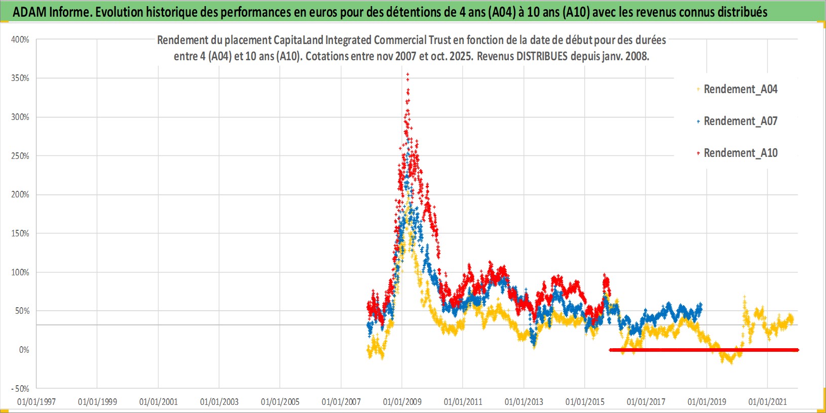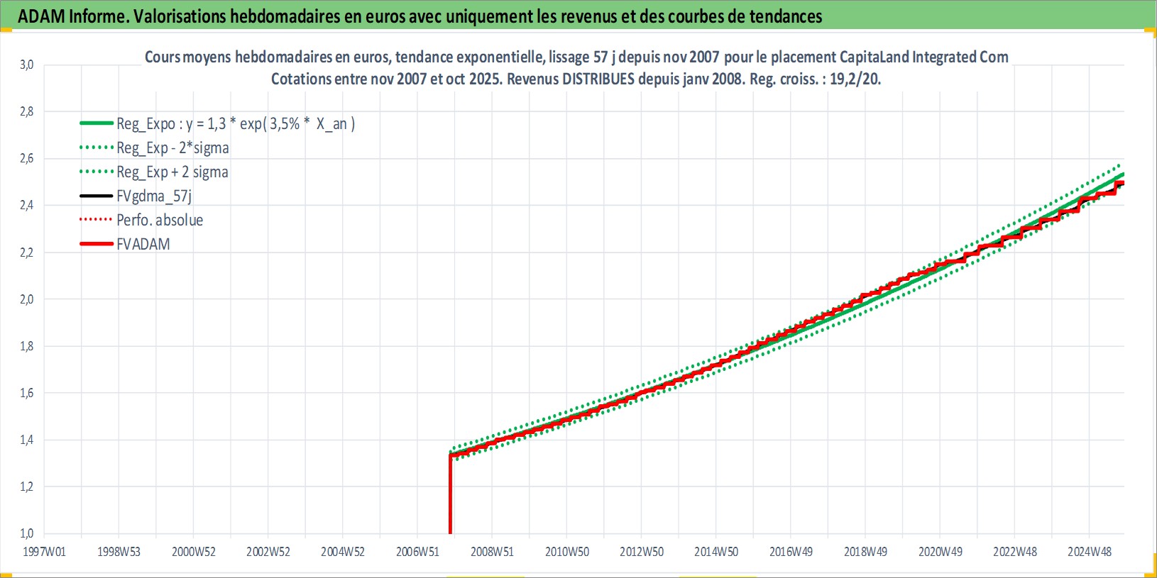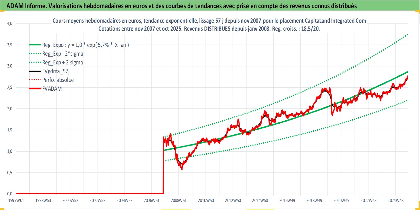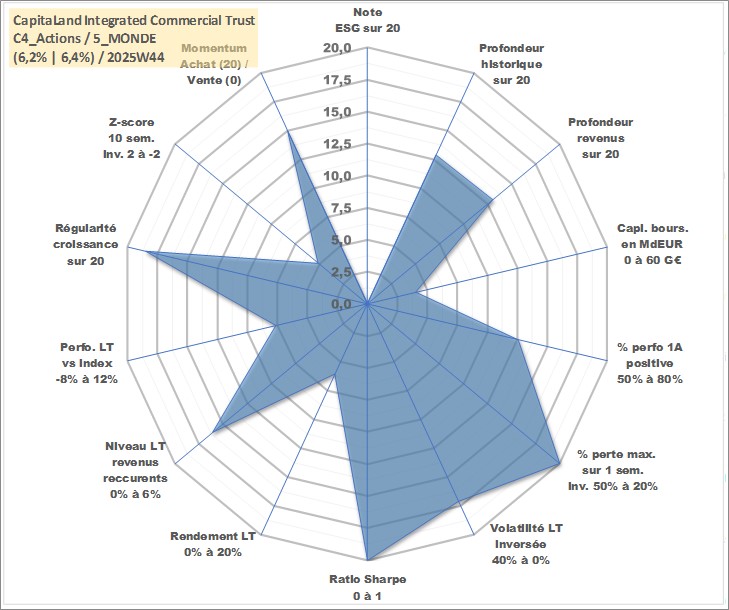 Site dédié aux investisseursPage dédiée sur site financeAnalyse des valorisations hebdomadaires de l'action CapitaLand Integrated Commercial Trust. Cet actif est cote en SGD. Les valorisations sont en contrevaleur EURO et couvrent les semaines 2007W45 a 2025W44. Les revenus de cet actif financier sont pris en compte depuis la semaine 2008W05. La note ESG de cet actif n'est pas connue.