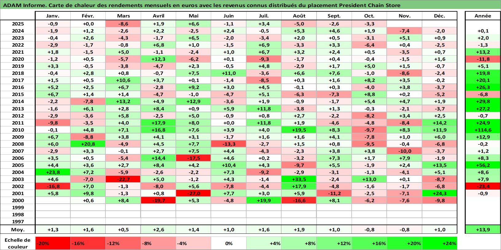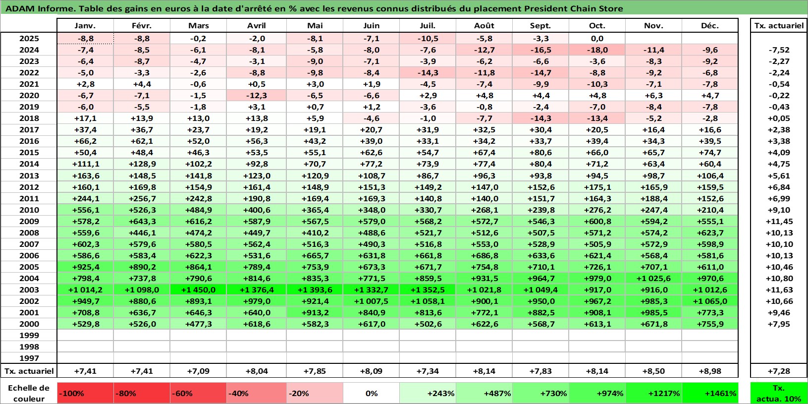 Dernière perfo 1 an en %