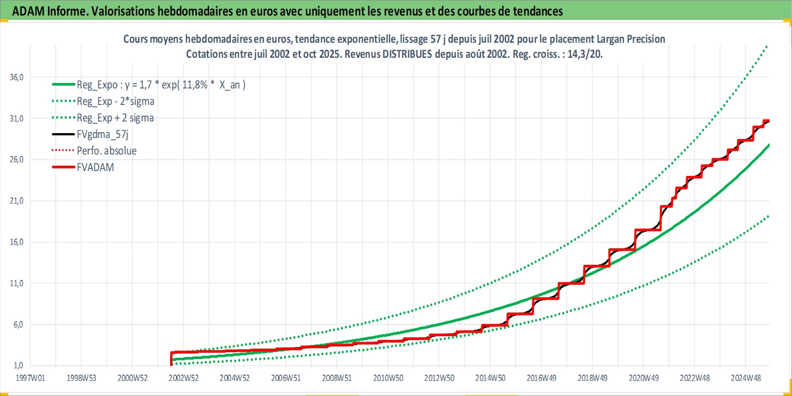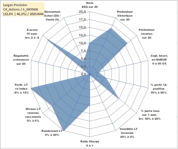 Site dédié aux investisseursPage dédiée sur site financeAnalyse des valorisations hebdomadaires de l'action Largan Precision . Cet actif est cote en TWD. Les valorisations sont en contrevaleur EURO et couvrent les semaines 2002W27 a 2025W44. Les revenus de cet actif financier sont pris en compte depuis la semaine 2002W35. La note globale ESG de cet actif est estimee a 10.0 (apres rebasage entre 0 et 20).