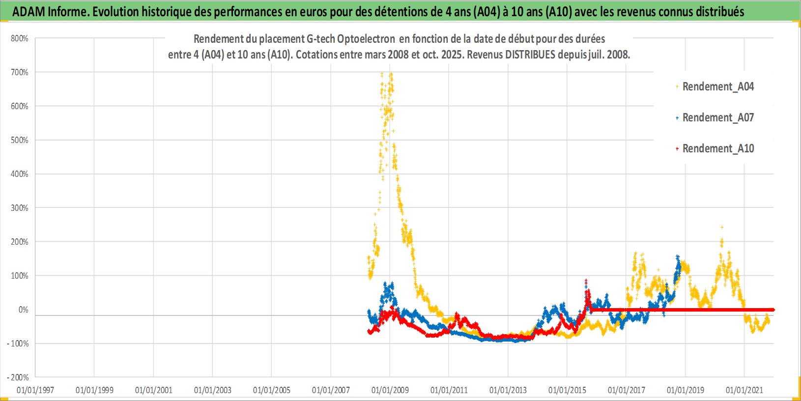 Site dédié aux investisseursPage dédiée sur site financeAnalyse des valorisations hebdomadaires de l'action G-tech Optoelectron . Cet actif est cote en TWD. Les valorisations sont en contrevaleur EURO et couvrent les semaines 2008W14 a 2025W44. Les revenus de cet actif financier sont pris en compte depuis la semaine 2008W28. La note ESG de cet actif n'est pas connue.