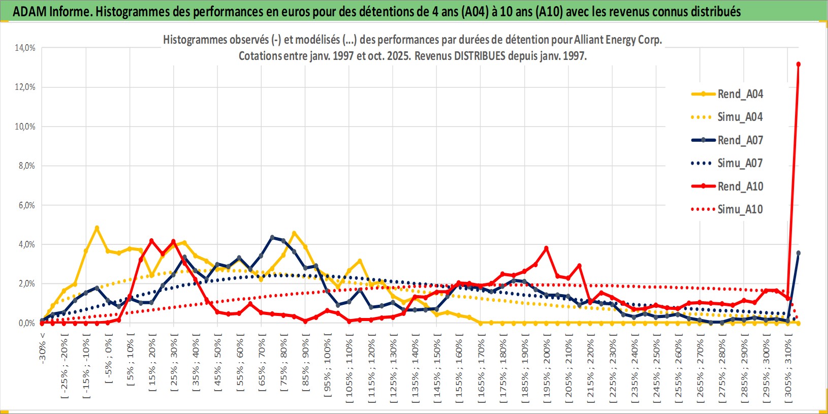 Site dédié aux investisseursPage dédiée sur site financeAnalyse des valorisations hebdomadaires de l'action Alliant Energy Corp. Cet actif est cote en USD. Les valorisations sont en contrevaleur EURO et couvrent les semaines 1997W01 a 2025W44. Les revenus de cet actif financier sont pris en compte depuis la semaine 1997W05. La note globale ESG de cet actif est estimee a 9.0 (apres rebasage entre 0 et 20).