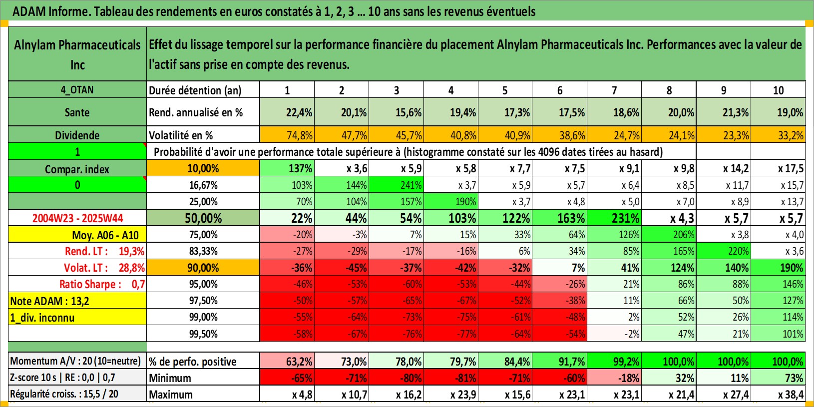 Site dédié aux investisseursPage dédiée sur site financeAnalyse des valorisations hebdomadaires de l'action Alnylam Pharmaceuticals Inc. Cet actif est cote en USD. Les valorisations sont en contrevaleur EURO et couvrent les semaines 2004W23 a 2025W44. Les revenus de cet actif financier ne sont pas connus car non existants ou non disponibles sur le site Yahoo Finance. La note ESG de cet actif n'est pas connue.