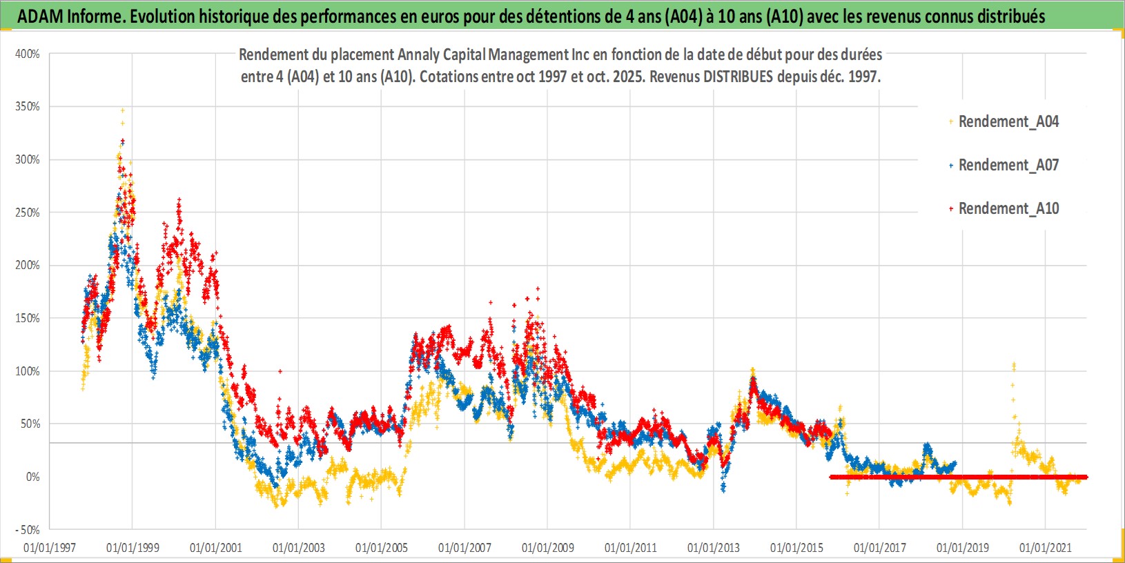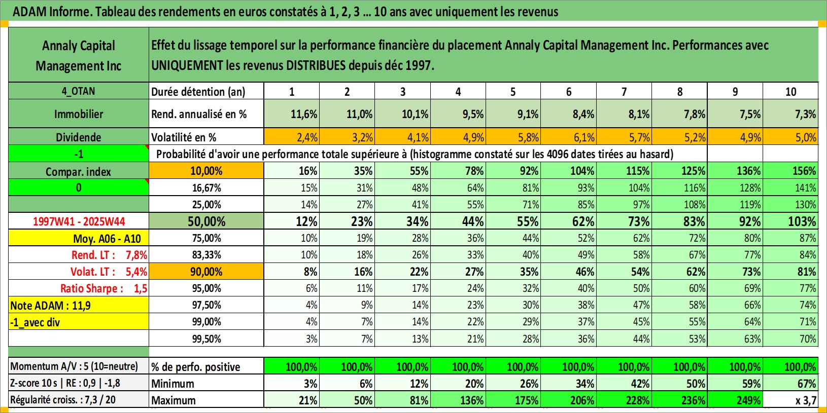 Site dédié aux investisseursPage dédiée sur site financeAnalyse des valorisations hebdomadaires de l'action Annaly Capital Management Inc. Cet actif est cote en USD. Les valorisations sont en contrevaleur EURO et couvrent les semaines 1997W41 a 2025W44. Les revenus de cet actif financier sont pris en compte depuis la semaine 1998W01. La note globale ESG de cet actif est estimee a 11.0 (apres rebasage entre 0 et 20).