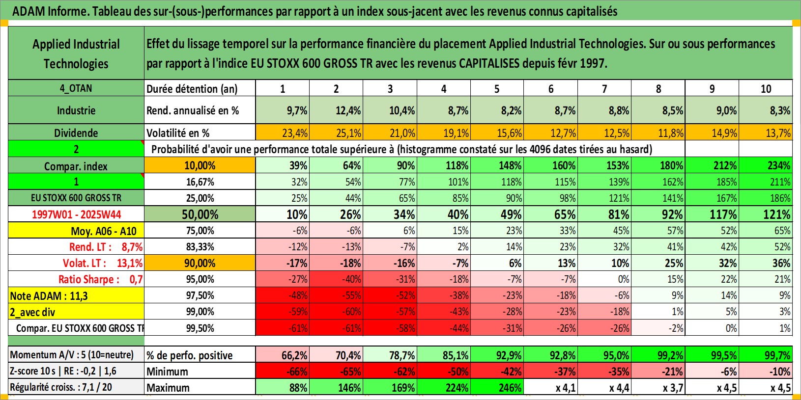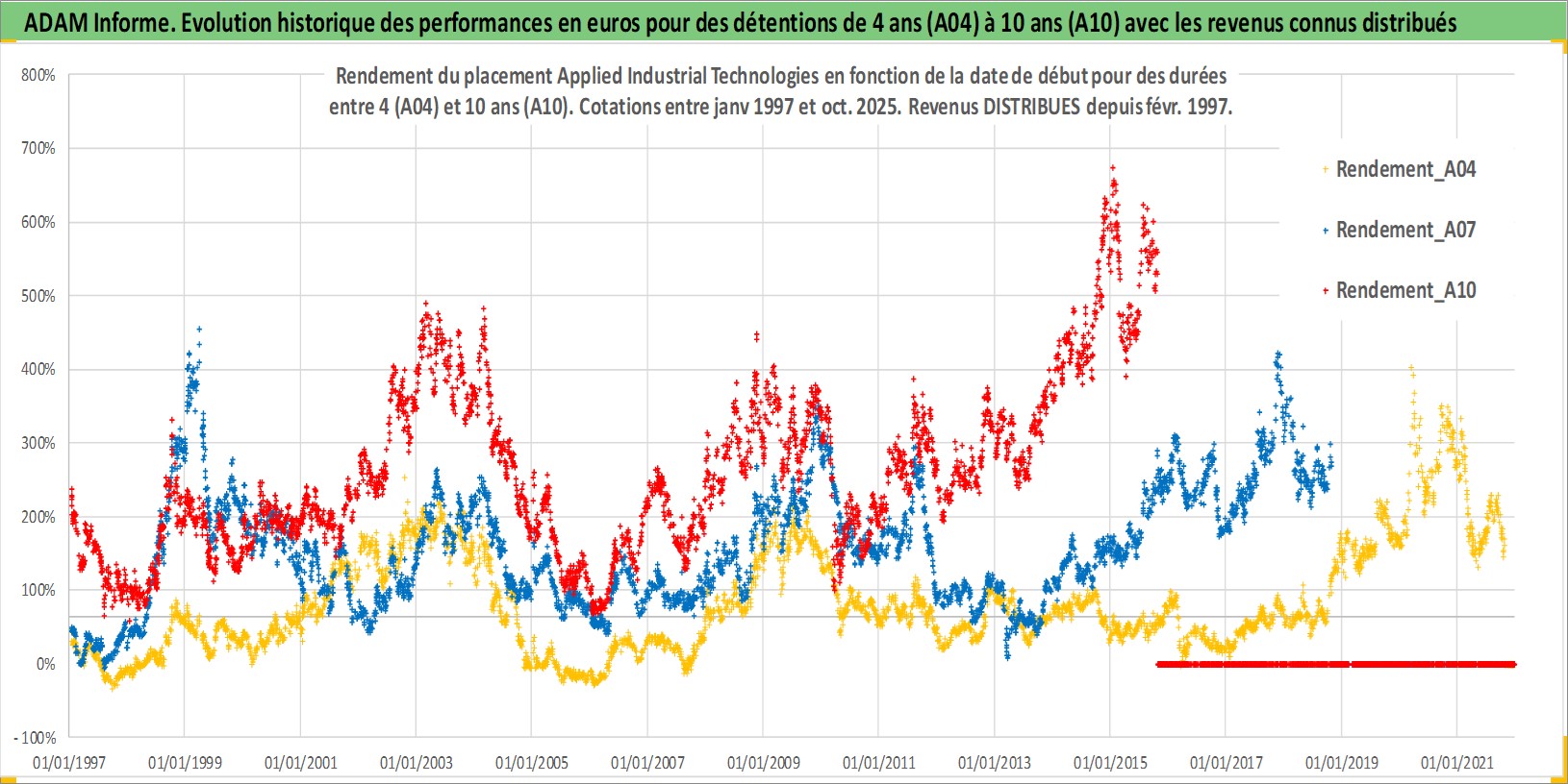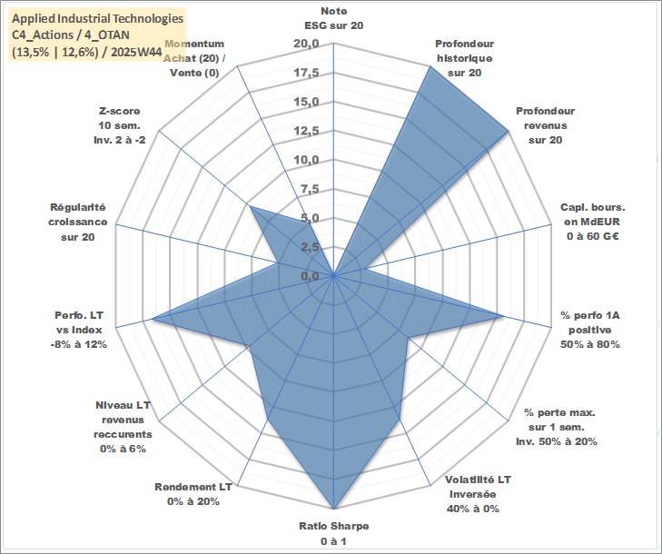 Site dédié aux investisseursPage dédiée sur site financeAnalyse des valorisations hebdomadaires de l'action Applied Industrial Technologies. Cet actif est cote en USD. Les valorisations sont en contrevaleur EURO et couvrent les semaines 1997W01 a 2025W44. Les revenus de cet actif financier sont pris en compte depuis la semaine 1997W07. La note ESG de cet actif n'est pas connue.