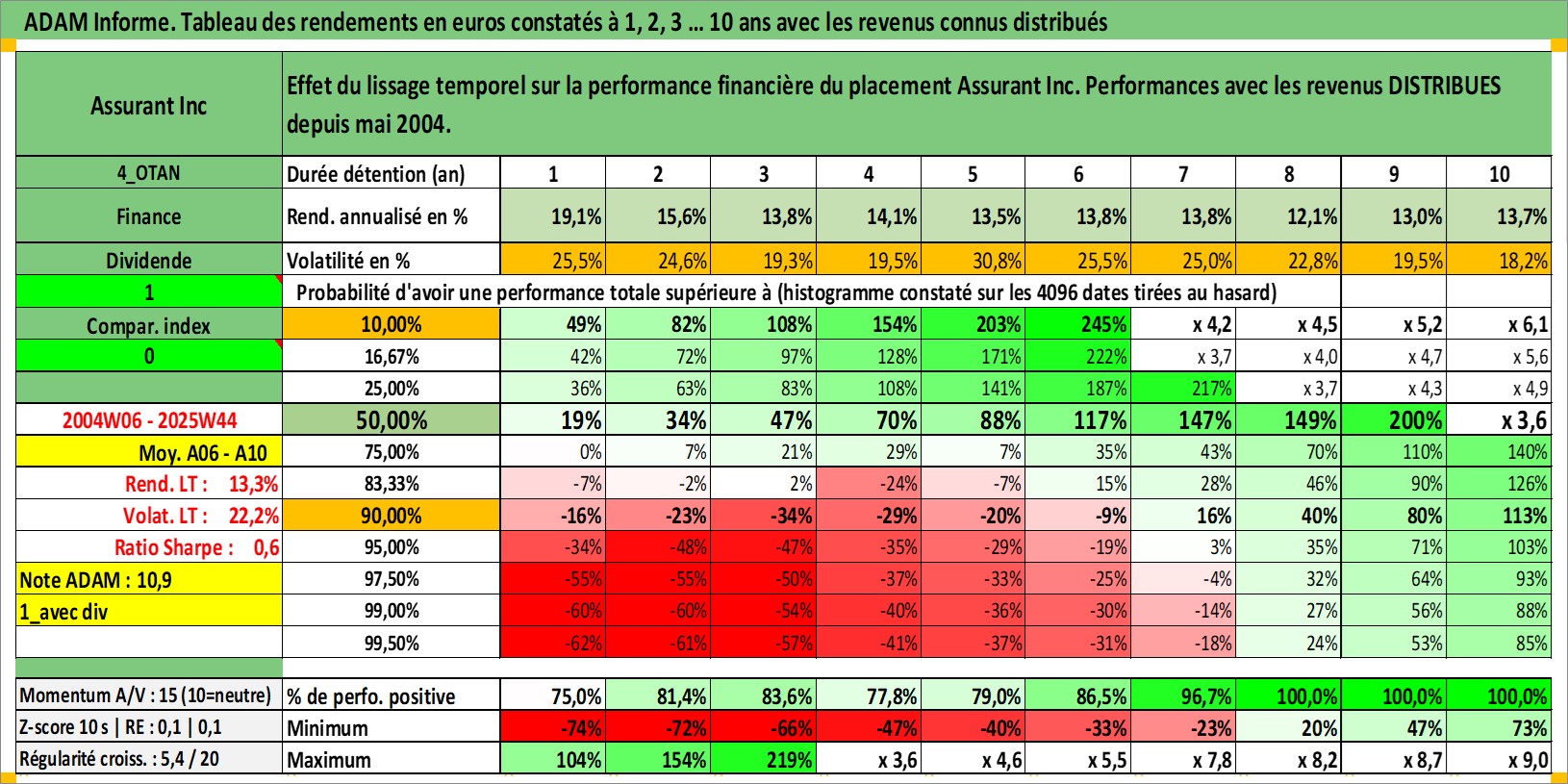 Site dédié aux investisseursPage dédiée sur site financeAnalyse des valorisations hebdomadaires de l'action Assurant Inc. Cet actif est cote en USD. Les valorisations sont en contrevaleur EURO et couvrent les semaines 2004W06 a 2025W44. Les revenus de cet actif financier sont pris en compte depuis la semaine 2004W21. La note globale ESG de cet actif est estimee a 8.0 (apres rebasage entre 0 et 20).