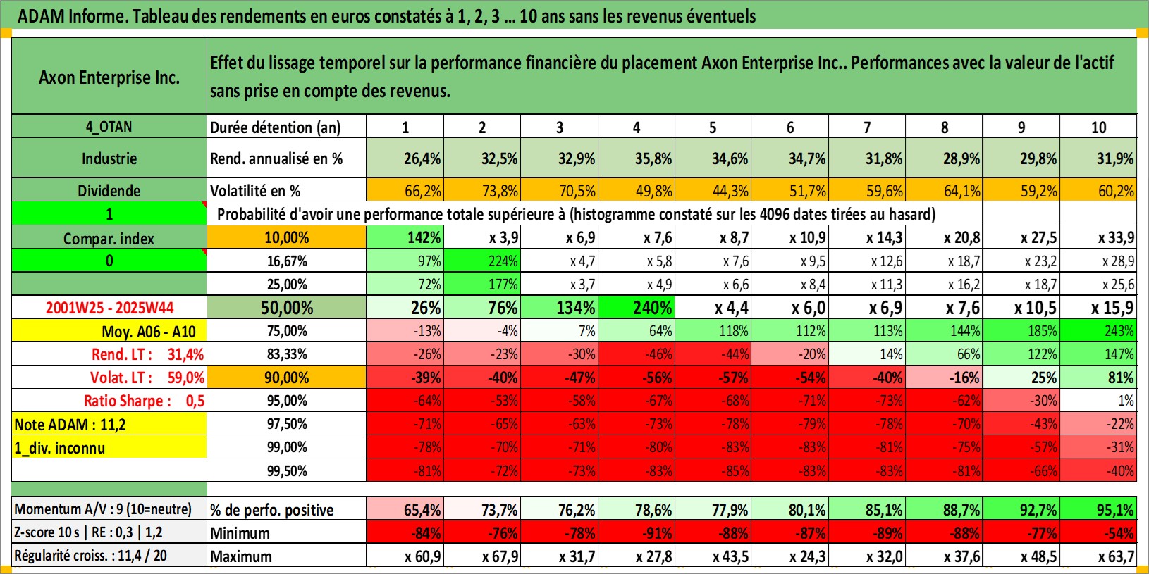 Site dédié aux investisseursPage dédiée sur site financeAnalyse des valorisations hebdomadaires de l'action Axon Enterprise Inc.. Cet actif est cote en USD. Les valorisations sont en contrevaleur EURO et couvrent les semaines 2001W25 a 2025W44. Les revenus de cet actif financier ne sont pas connus car non existants ou non disponibles sur le site Yahoo Finance. La note ESG de cet actif n'est pas connue.