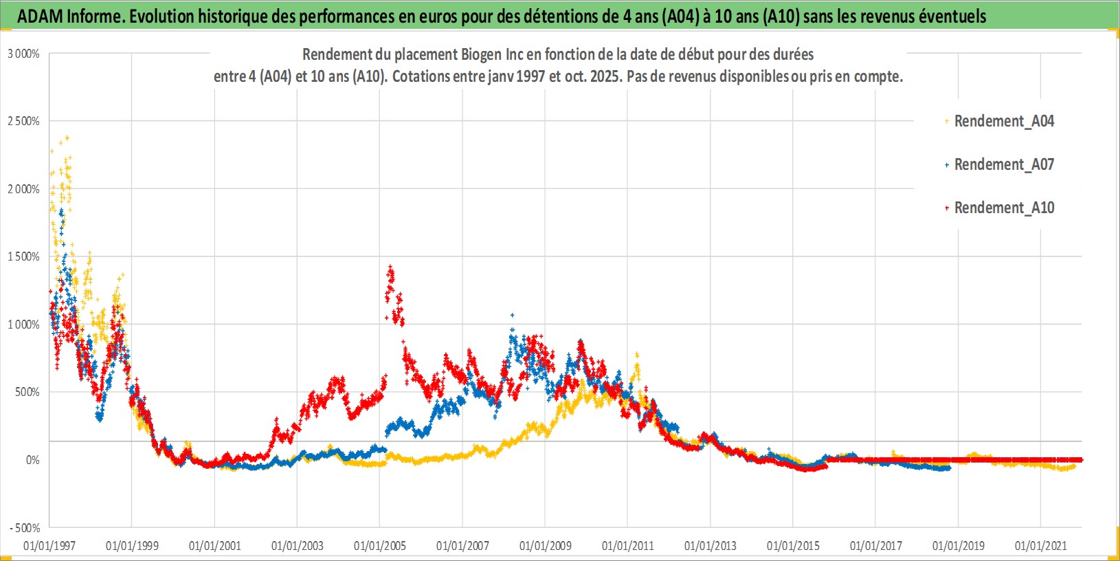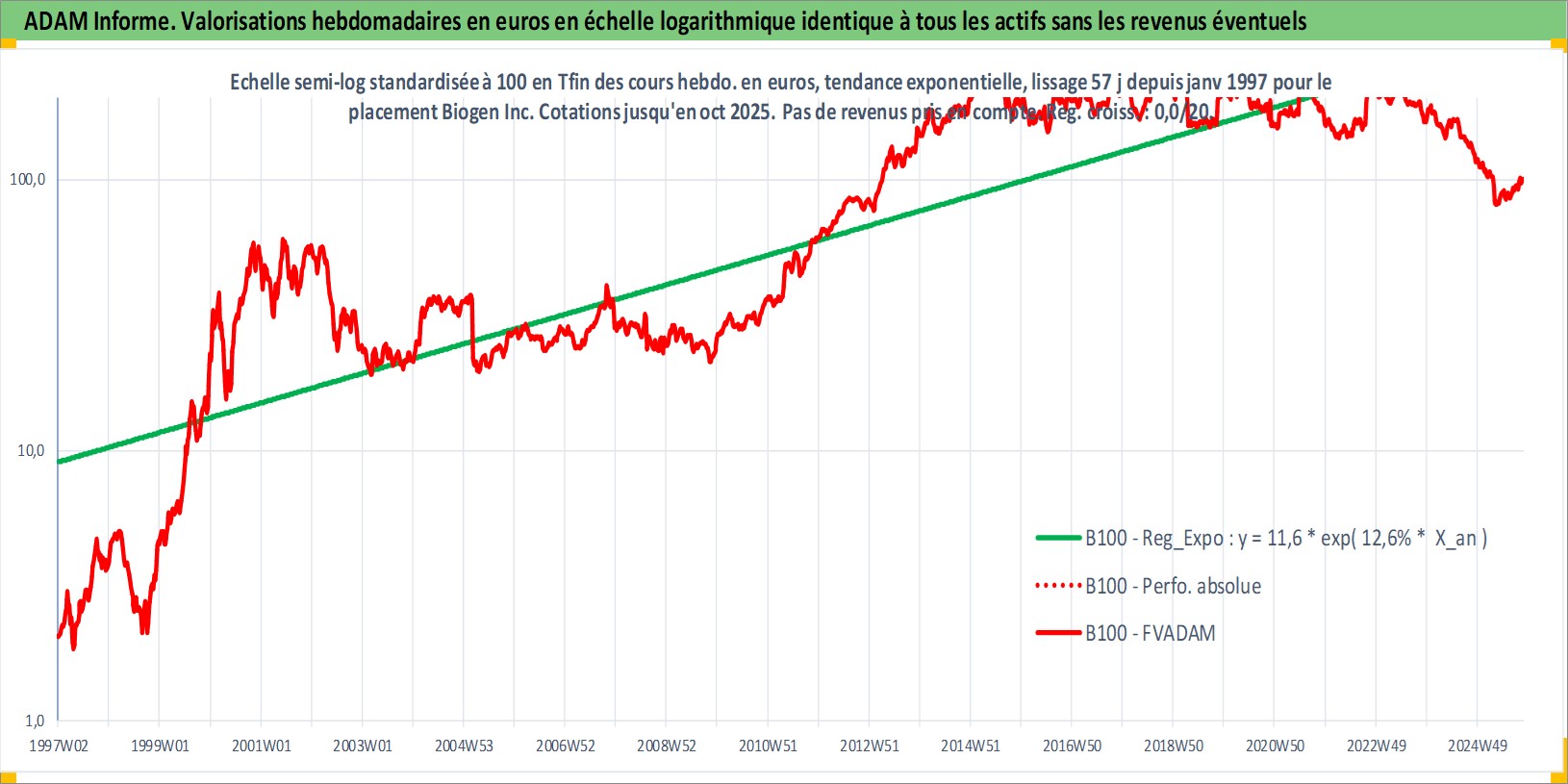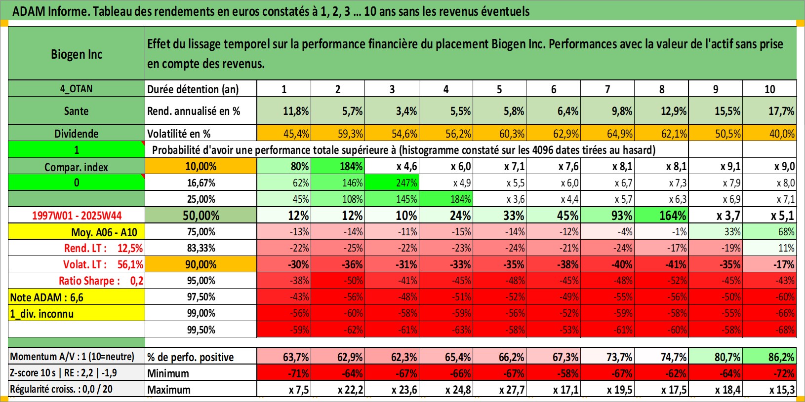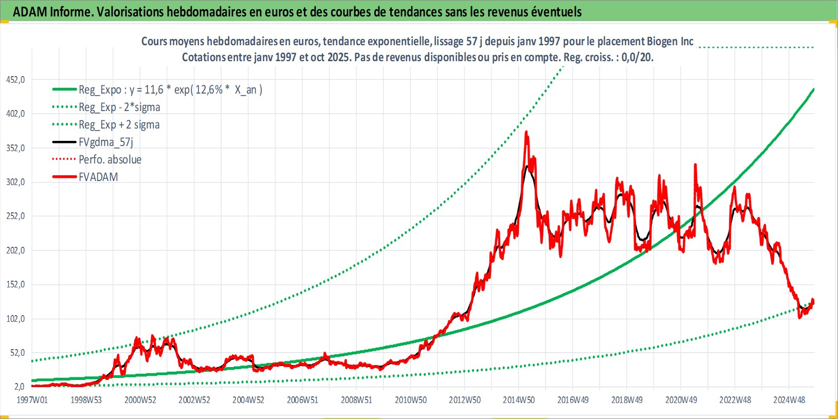 Site dédié aux investisseursPage dédiée sur site financeAnalyse des valorisations hebdomadaires de l'action Biogen Inc. Cet actif est cote en USD. Les valorisations sont en contrevaleur EURO et couvrent les semaines 1997W01 a 2025W44. Les revenus de cet actif financier ne sont pas connus car non existants ou non disponibles sur le site Yahoo Finance. La note globale ESG de cet actif est estimee a 10.0 (apres rebasage entre 0 et 20).