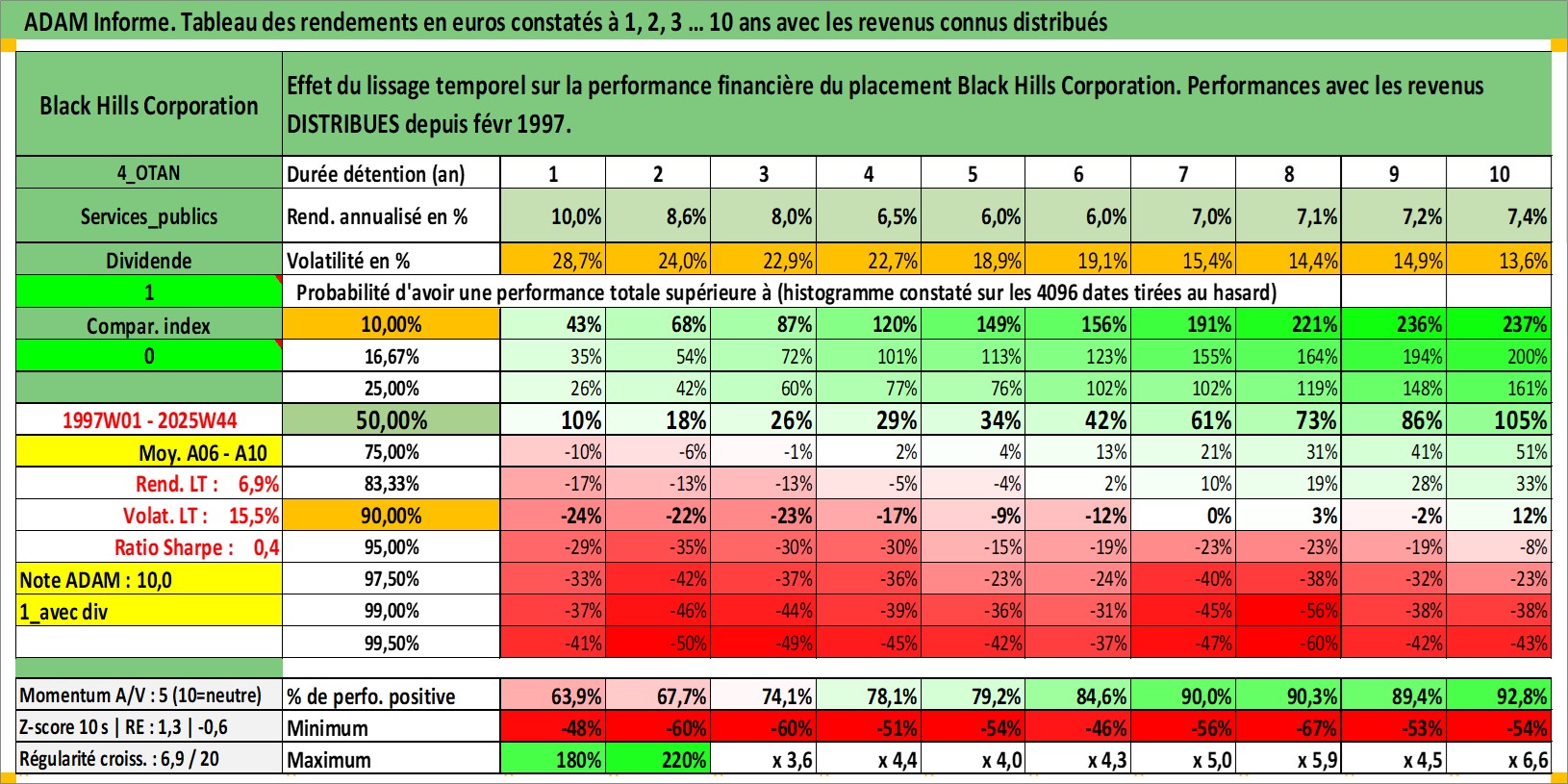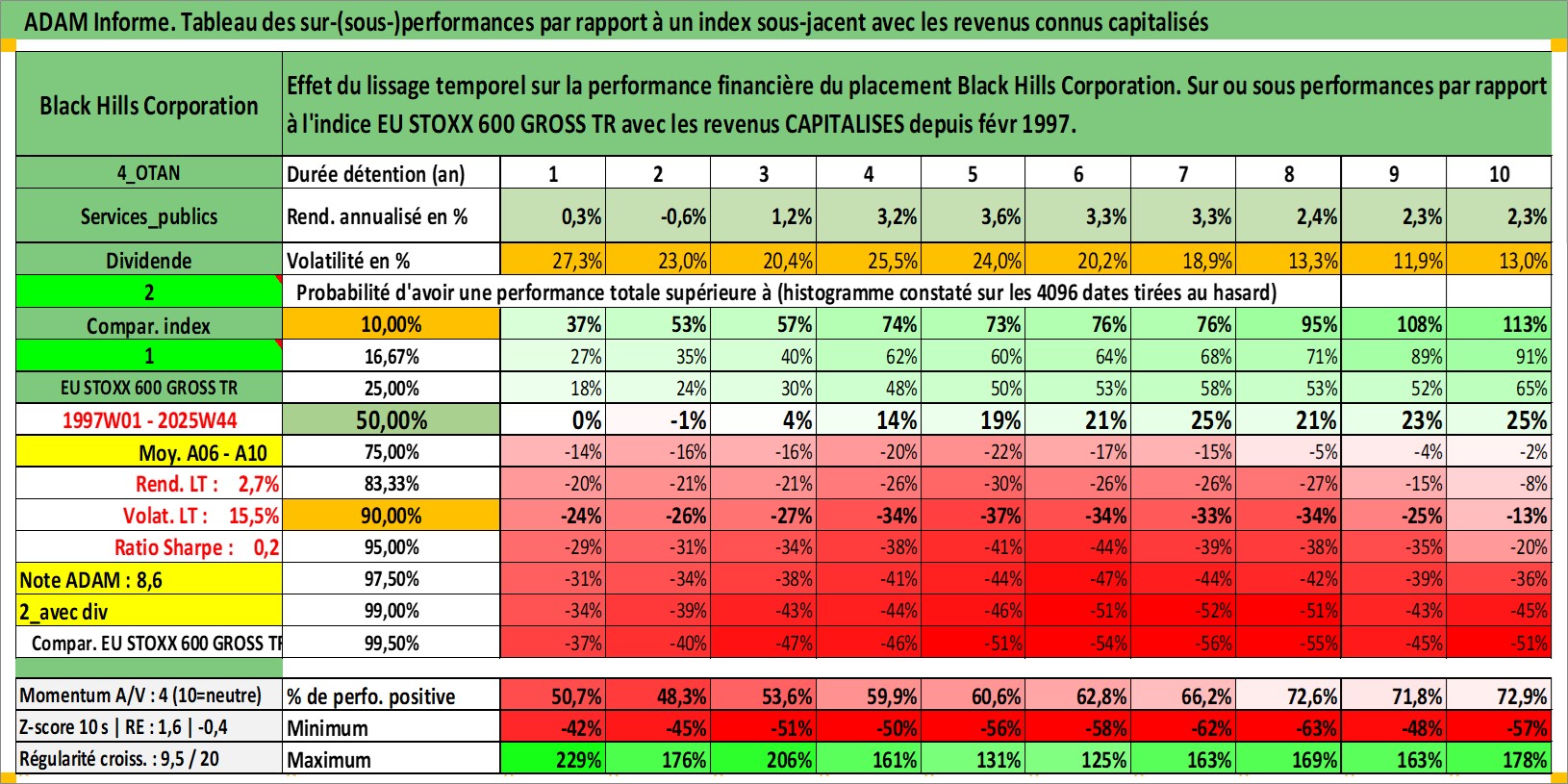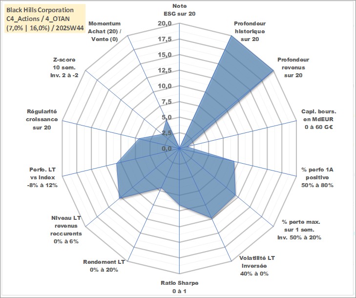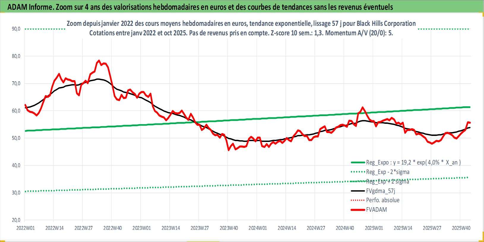 Site dédié aux investisseursPage dédiée sur site financeAnalyse des valorisations hebdomadaires de l'action Black Hills Corporation. Cet actif est cote en USD. Les valorisations sont en contrevaleur EURO et couvrent les semaines 1997W01 a 2025W44. Les revenus de cet actif financier sont pris en compte depuis la semaine 1997W07. La note ESG de cet actif n'est pas connue.