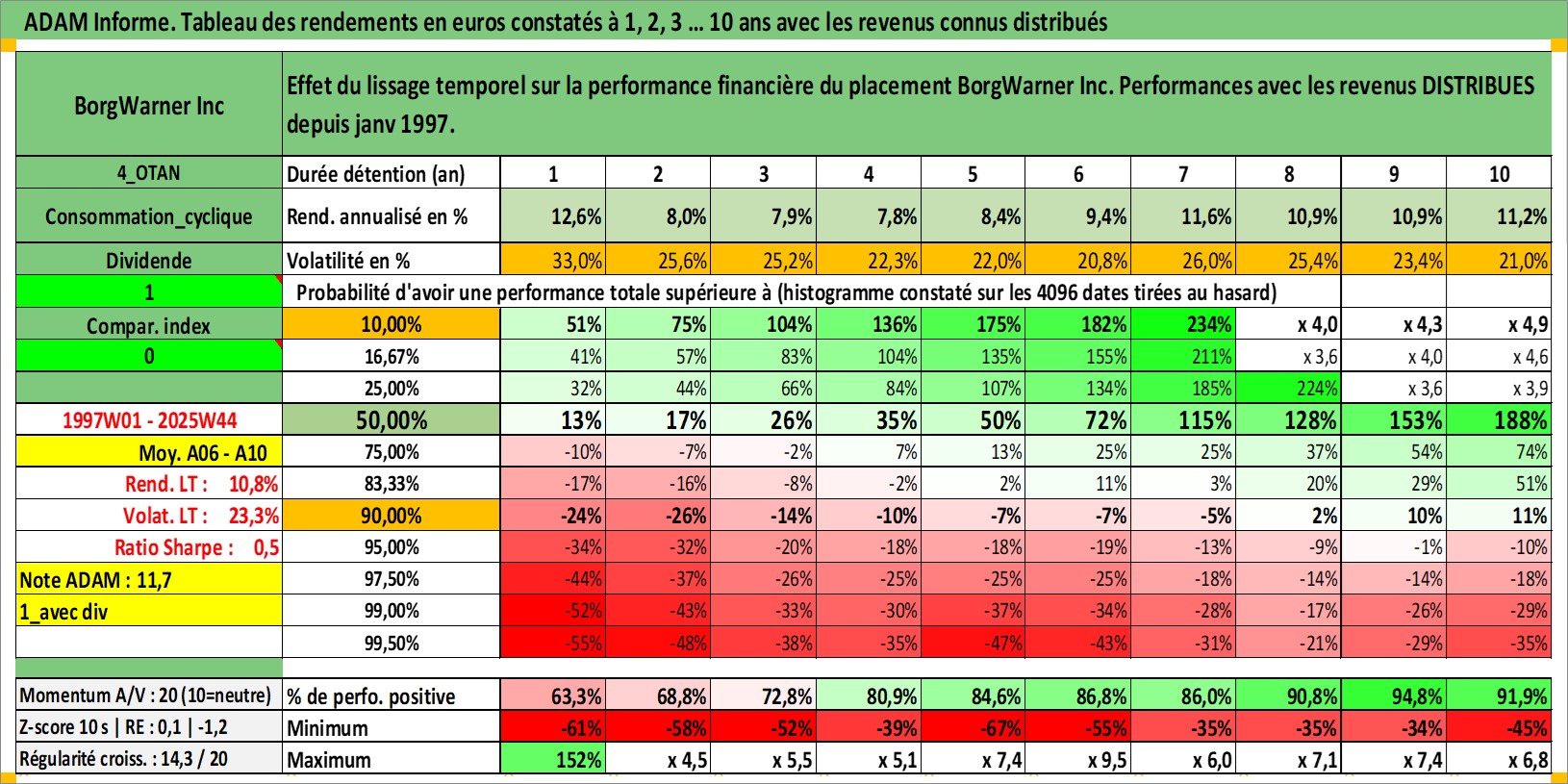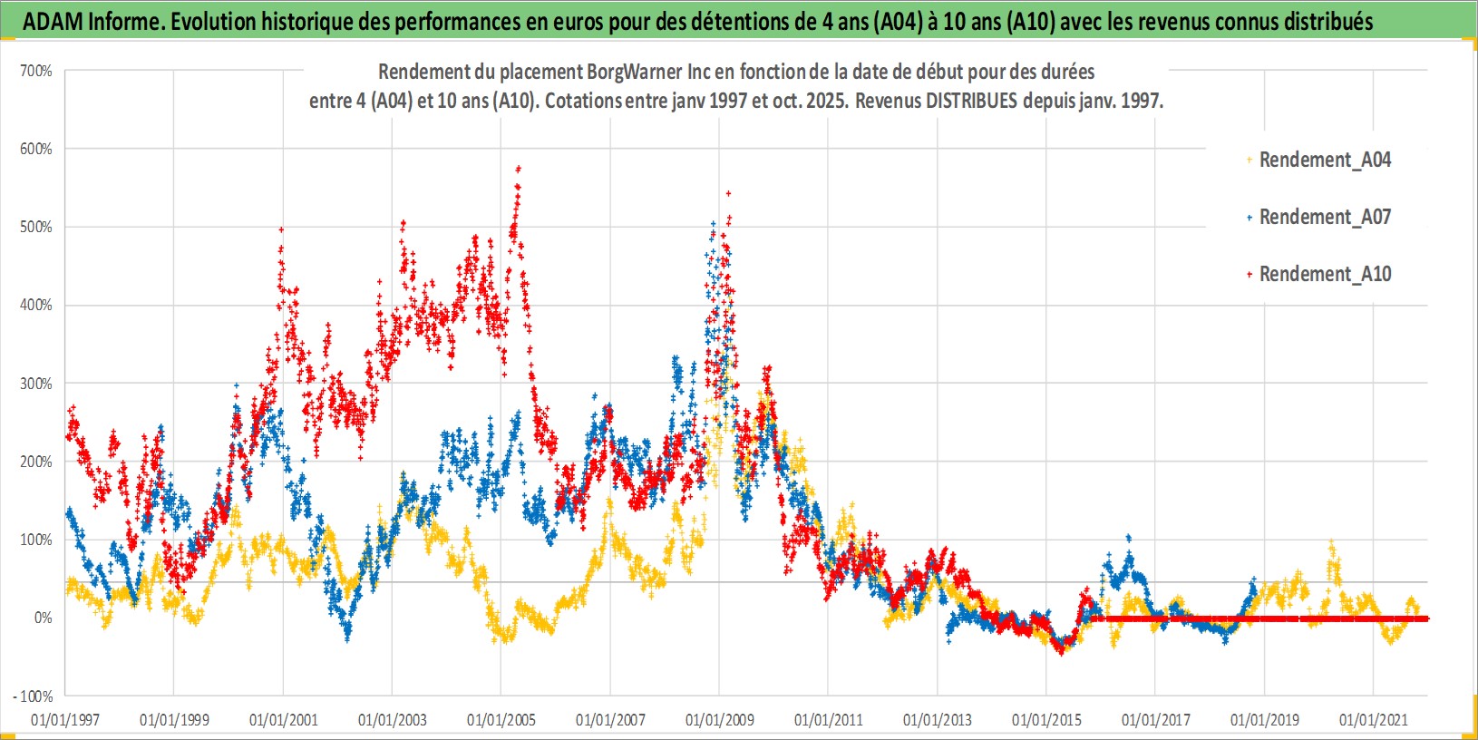 Site dédié aux investisseursPage dédiée sur site financeAnalyse des valorisations hebdomadaires de l'action BorgWarner Inc. Cet actif est cote en USD. Les valorisations sont en contrevaleur EURO et couvrent les semaines 1997W01 a 2025W44. Les revenus de cet actif financier sont pris en compte depuis la semaine 1997W05. La note globale ESG de cet actif est estimee a 15.0 (apres rebasage entre 0 et 20).