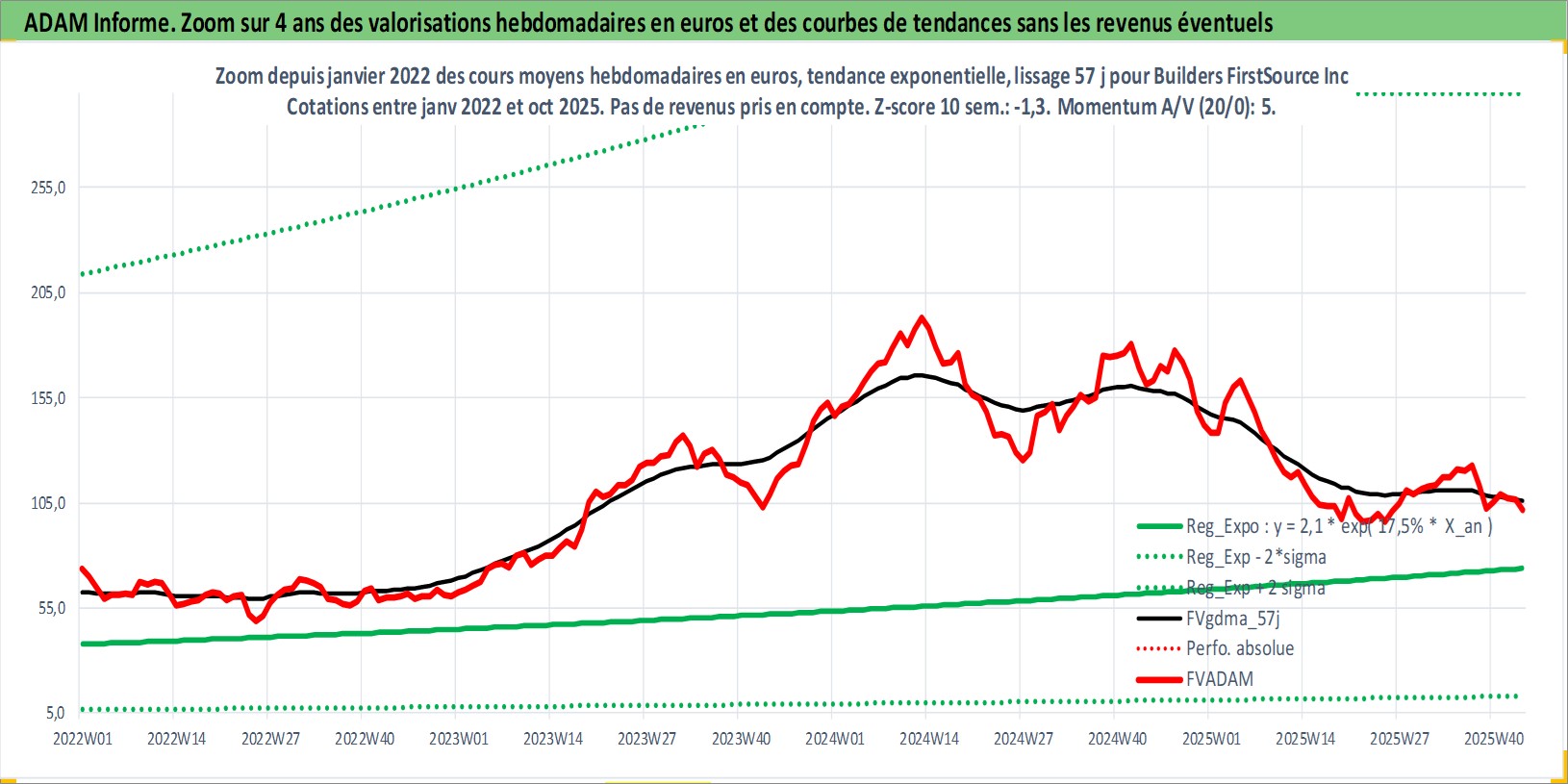 Site dédié aux investisseursPage dédiée sur site financeAnalyse des valorisations hebdomadaires de l'action Builders FirstSource Inc. Cet actif est cote en USD. Les valorisations sont en contrevaleur EURO et couvrent les semaines 2005W26 a 2025W44. Les revenus de cet actif financier ne sont pas connus car non existants ou non disponibles sur le site Yahoo Finance. La note ESG de cet actif n'est pas connue.