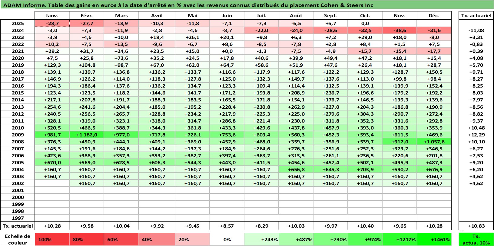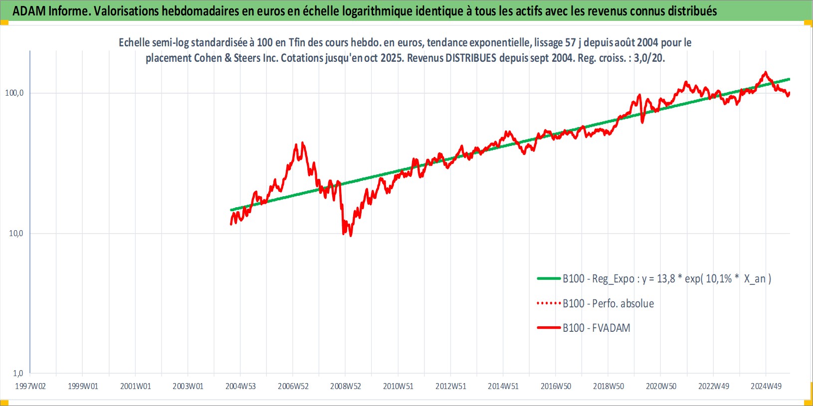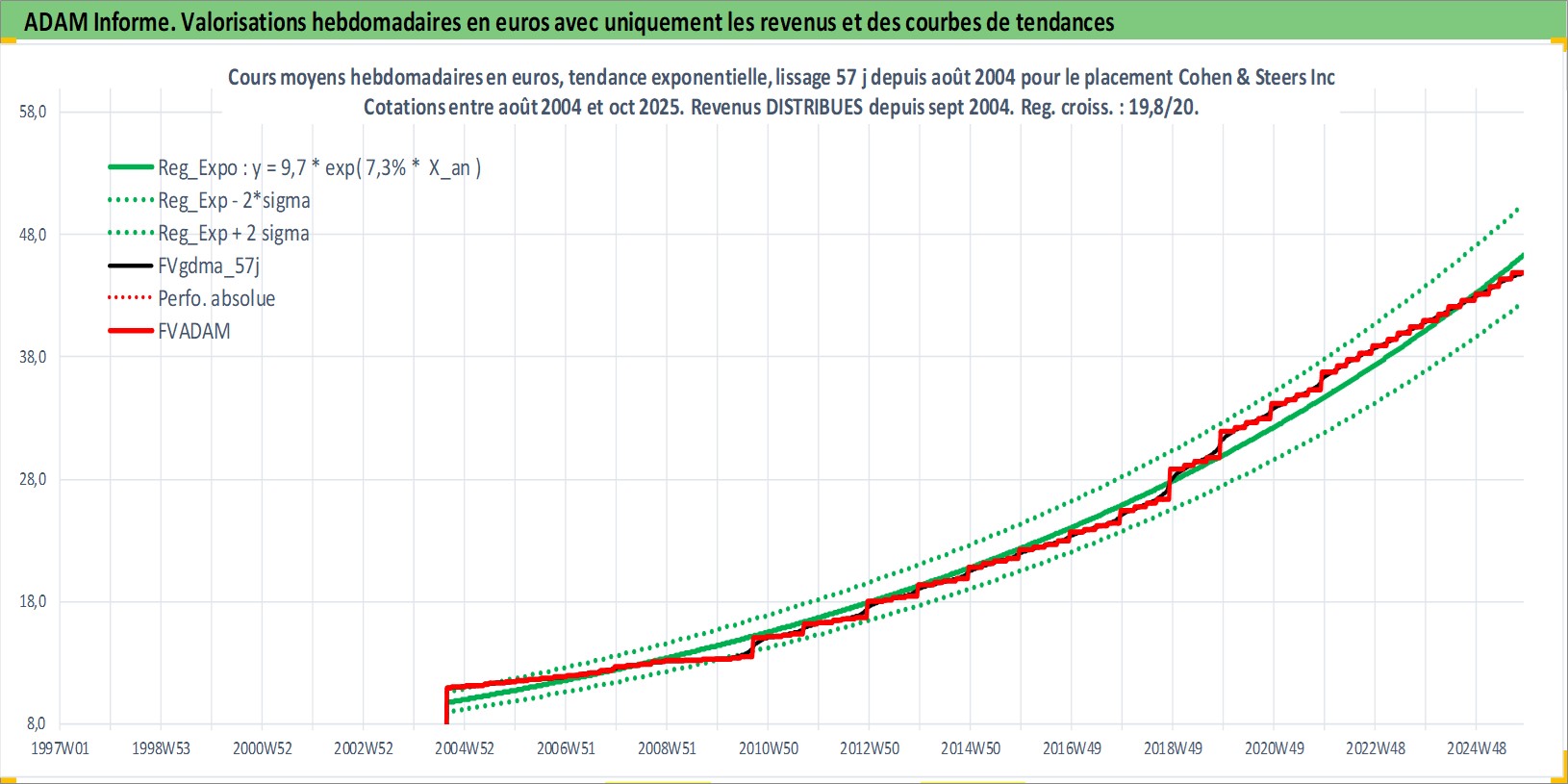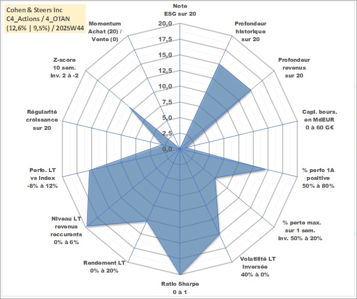 Site dédié aux investisseursPage dédiée sur site financeAnalyse des valorisations hebdomadaires de l'action Cohen & Steers Inc. Cet actif est cote en USD. Les valorisations sont en contrevaleur EURO et couvrent les semaines 2004W34 a 2025W44. Les revenus de cet actif financier sont pris en compte depuis la semaine 2004W39. La note ESG de cet actif n'est pas connue.