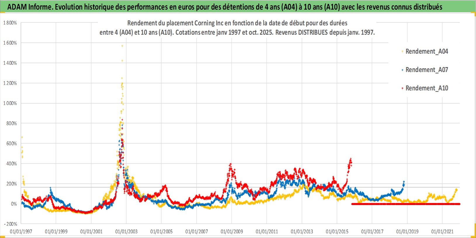 Site dédié aux investisseursPage dédiée sur site financeAnalyse des valorisations hebdomadaires de l'action Corning Inc. Cet actif est cote en USD. Les valorisations sont en contrevaleur EURO et couvrent les semaines 1997W01 a 2025W44. Les revenus de cet actif financier sont pris en compte depuis la semaine 1997W03. La note globale ESG de cet actif est estimee a 11.0 (apres rebasage entre 0 et 20).
