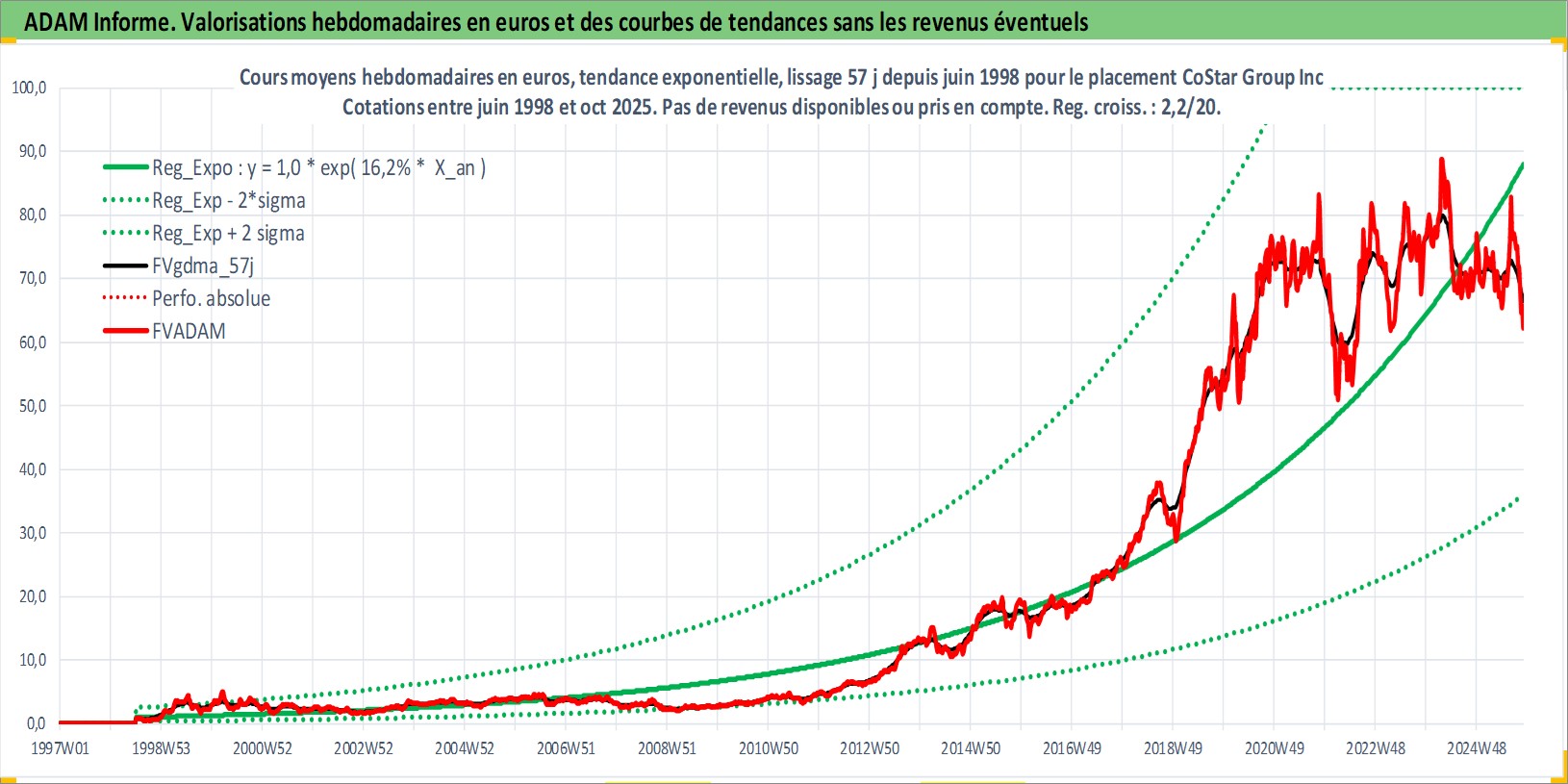 Site dédié aux investisseursPage dédiée sur site financeAnalyse des valorisations hebdomadaires de l'action CoStar Group Inc. Cet actif est cote en USD. Les valorisations sont en contrevaleur EURO et couvrent les semaines 1998W27 a 2025W44. Les revenus de cet actif financier ne sont pas connus car non existants ou non disponibles sur le site Yahoo Finance. La note globale ESG de cet actif est estimee a 7.0 (apres rebasage entre 0 et 20).