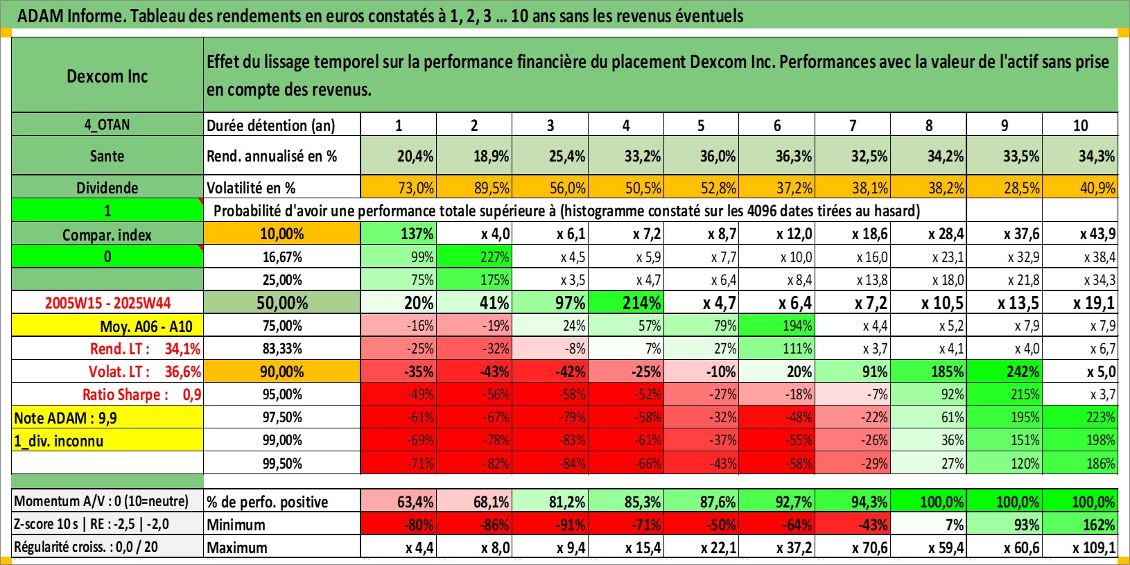 Site dédié aux investisseursPage dédiée sur site financeAnalyse des valorisations hebdomadaires de l'action Dexcom Inc. Cet actif est cote en USD. Les valorisations sont en contrevaleur EURO et couvrent les semaines 2005W15 a 2025W44. Les revenus de cet actif financier ne sont pas connus car non existants ou non disponibles sur le site Yahoo Finance. La note globale ESG de cet actif est estimee a 8.0 (apres rebasage entre 0 et 20).