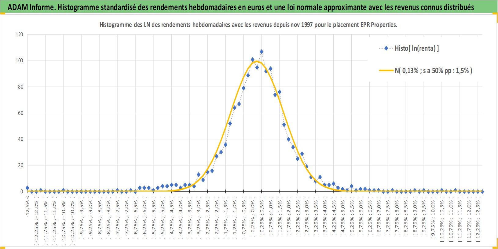 Site dédié aux investisseursPage dédiée sur site financeAnalyse des valorisations hebdomadaires de l'action EPR Properties. Cet actif est cote en USD. Les valorisations sont en contrevaleur EURO et couvrent les semaines 1997W47 a 2025W44. Les revenus de cet actif financier sont pris en compte depuis la semaine 1997W52. La note ESG de cet actif n'est pas connue.
