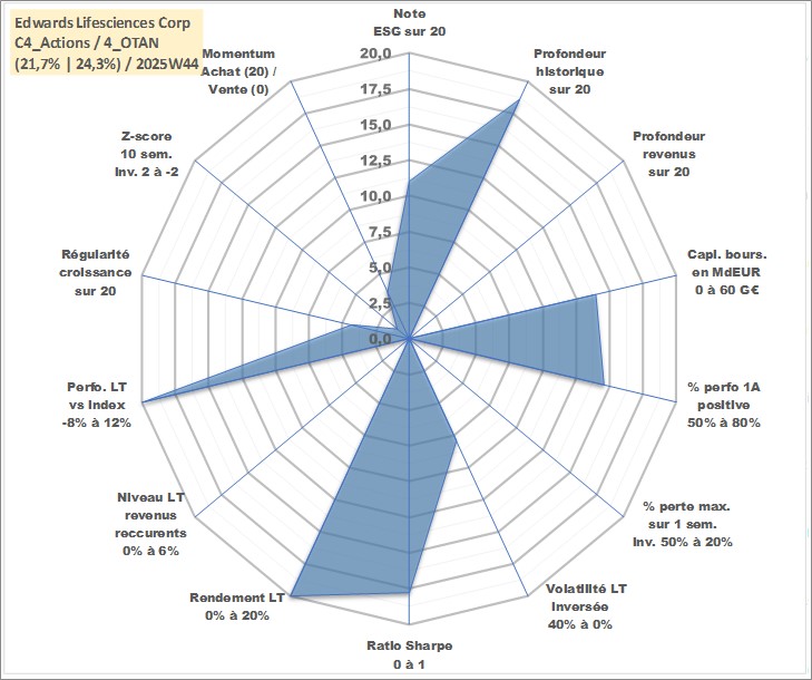 Site dédié aux investisseursPage dédiée sur site financeAnalyse des valorisations hebdomadaires de l'action Edwards Lifesciences Corp. Cet actif est cote en USD. Les valorisations sont en contrevaleur EURO et couvrent les semaines 2000W13 a 2025W44. Les revenus de cet actif financier ne sont pas connus car non existants ou non disponibles sur le site Yahoo Finance. La note globale ESG de cet actif est estimee a 11.0 (apres rebasage entre 0 et 20).