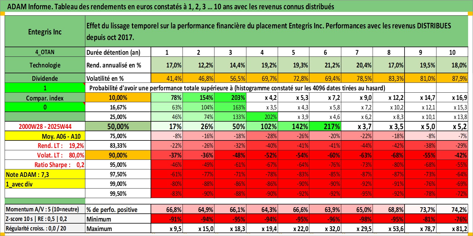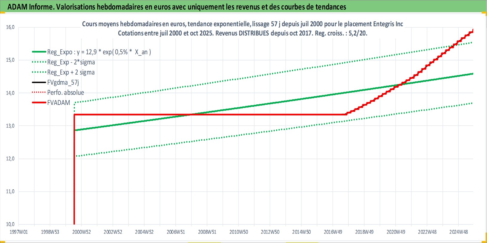 Site dédié aux investisseursPage dédiée sur site financeAnalyse des valorisations hebdomadaires de l'action Entegris Inc. Cet actif est cote en USD. Les valorisations sont en contrevaleur EURO et couvrent les semaines 2000W28 a 2025W44. Les revenus de cet actif financier sont pris en compte depuis la semaine 2017W44. La note ESG de cet actif n'est pas connue.