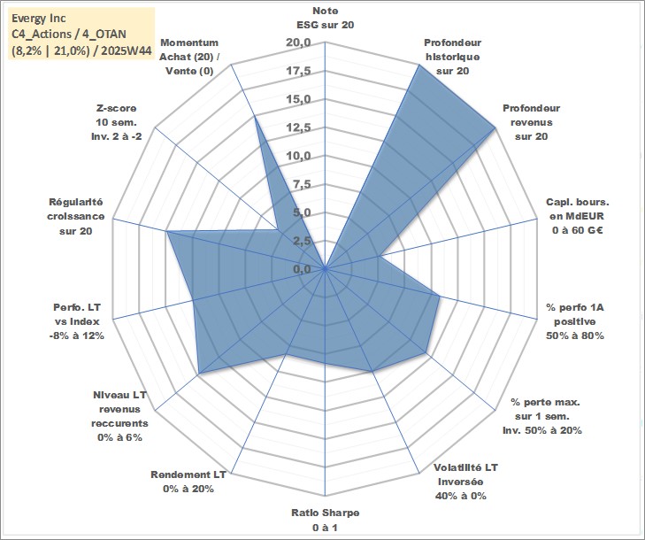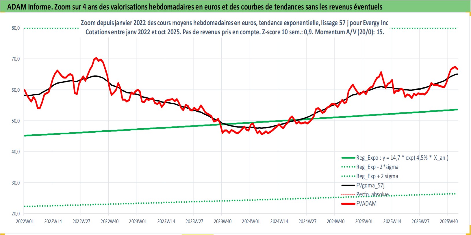 Site dédié aux investisseursPage dédiée sur site financeAnalyse des valorisations hebdomadaires de l'action Evergy Inc. Cet actif est cote en USD. Les valorisations sont en contrevaleur EURO et couvrent les semaines 1997W01 a 2025W44. Les revenus de cet actif financier sont pris en compte depuis la semaine 1997W09. La note ESG de cet actif n'est pas connue.