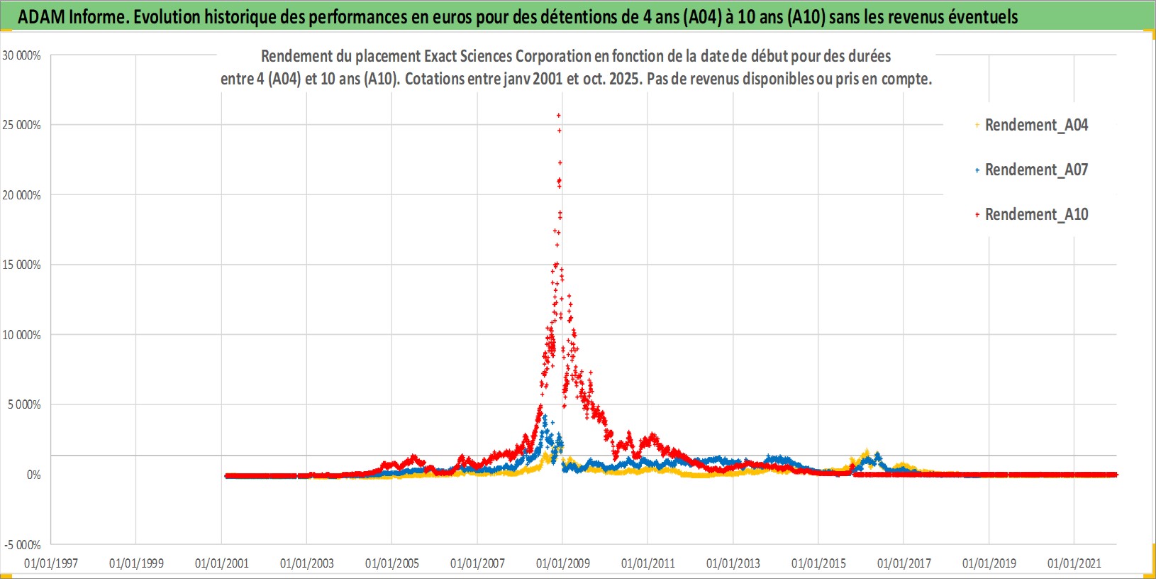 Site dédié aux investisseursPage dédiée sur site financeAnalyse des valorisations hebdomadaires de l'action Exact Sciences Corporation. Cet actif est cote en USD. Les valorisations sont en contrevaleur EURO et couvrent les semaines 2001W05 a 2025W44. Les revenus de cet actif financier ne sont pas connus car non existants ou non disponibles sur le site Yahoo Finance. La note ESG de cet actif n'est pas connue.