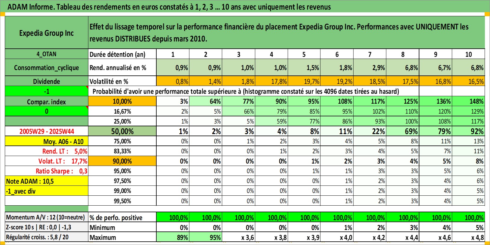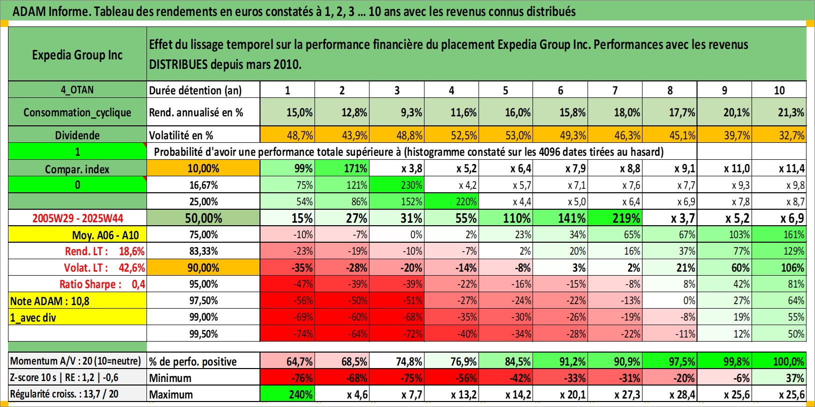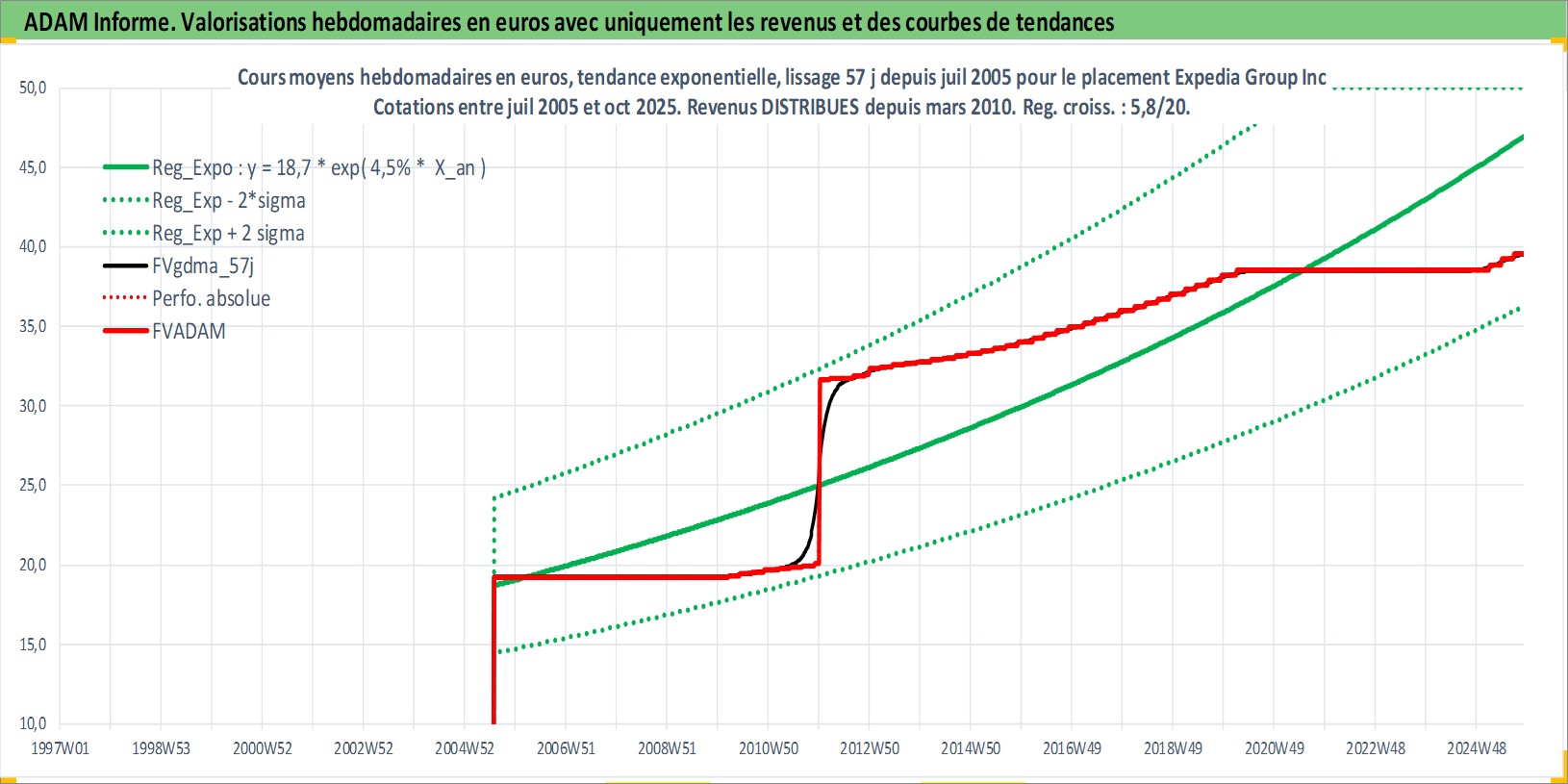 Site dédié aux investisseursPage dédiée sur site financeAnalyse des valorisations hebdomadaires de l'action Expedia Group Inc. Cet actif est cote en USD. Les valorisations sont en contrevaleur EURO et couvrent les semaines 2005W29 a 2025W44. Les revenus de cet actif financier sont pris en compte depuis la semaine 2010W10. La note globale ESG de cet actif est estimee a 7.0 (apres rebasage entre 0 et 20).