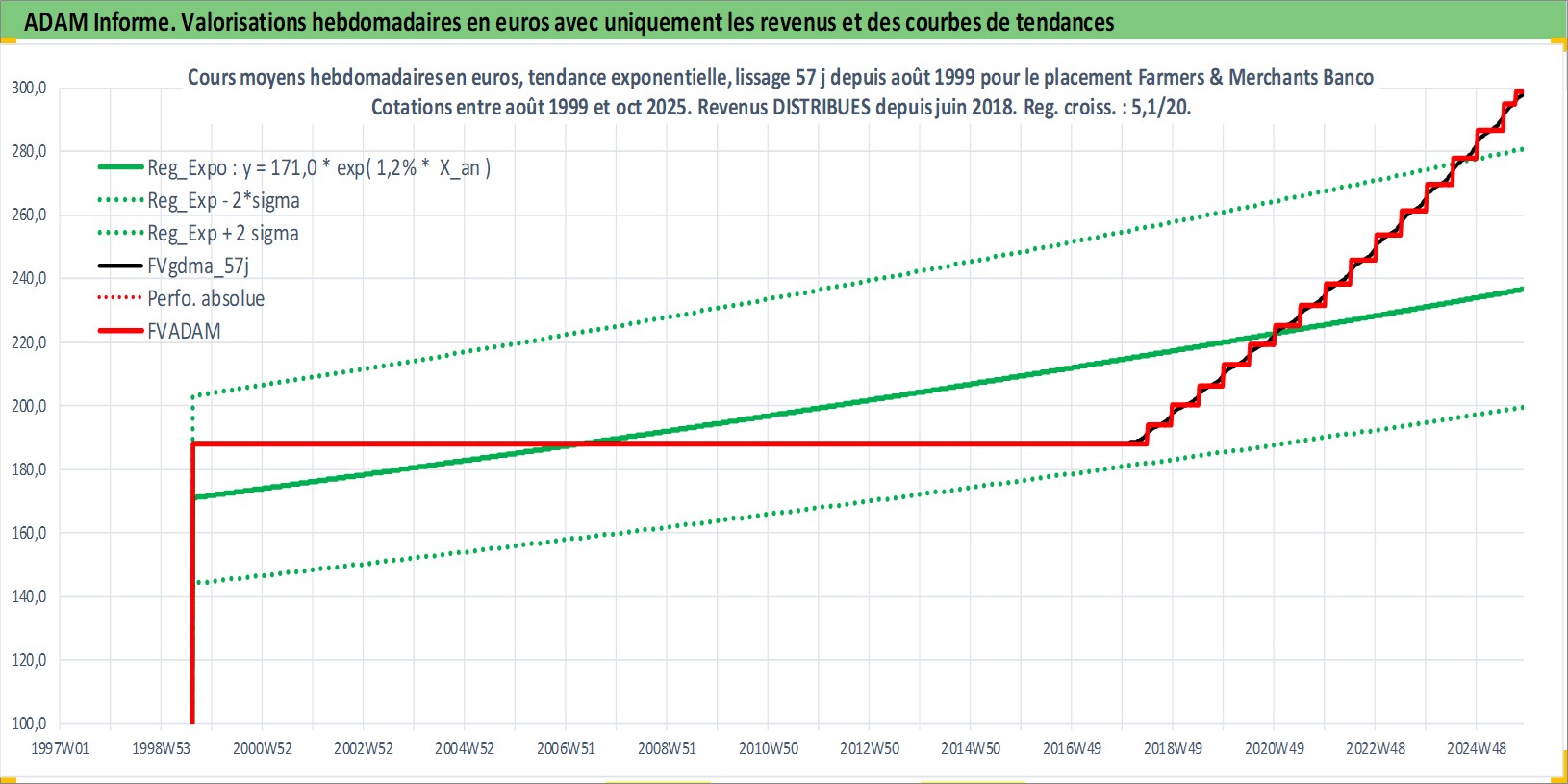 Site dédié aux investisseursPage dédiée sur site financeAnalyse des valorisations hebdomadaires de l'action Farmers & Merchants Bancorp. Cet actif est cote en USD. Les valorisations sont en contrevaleur EURO et couvrent les semaines 1999W33 a 2025W44. Les revenus de cet actif financier sont pris en compte depuis la semaine 2018W23. La note ESG de cet actif n'est pas connue.