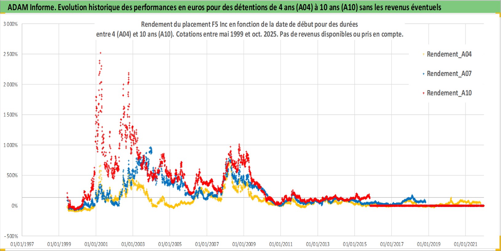 Site dédié aux investisseursPage dédiée sur site financeAnalyse des valorisations hebdomadaires de l'action F5 Inc. Cet actif est cote en USD. Les valorisations sont en contrevaleur EURO et couvrent les semaines 1999W22 a 2025W44. Les revenus de cet actif financier ne sont pas connus car non existants ou non disponibles sur le site Yahoo Finance. La note globale ESG de cet actif est estimee a 11.0 (apres rebasage entre 0 et 20).