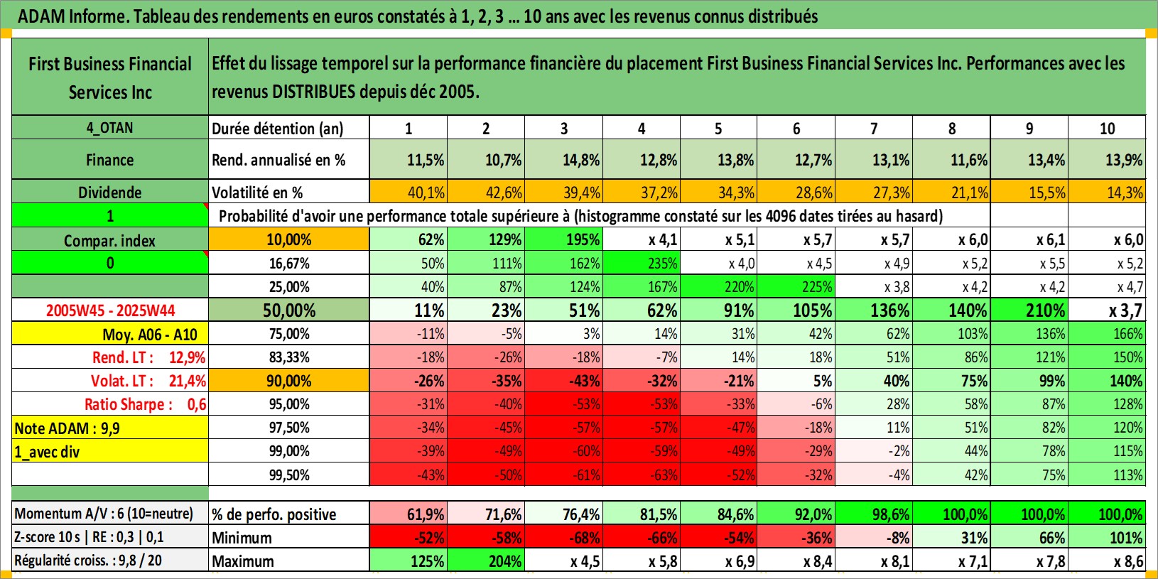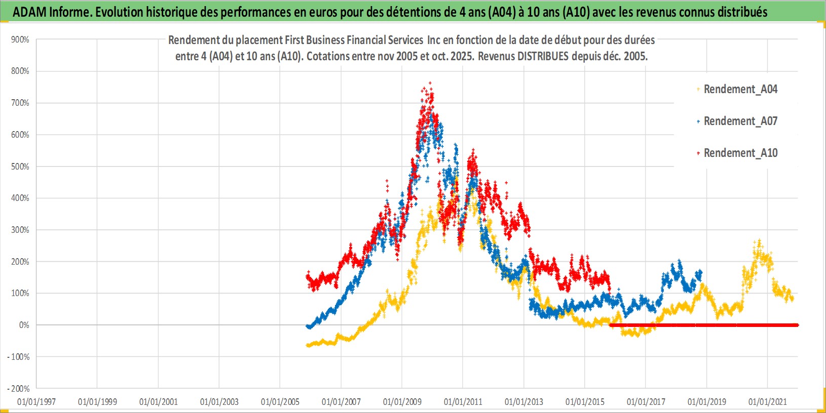 Site dédié aux investisseursPage dédiée sur site financeAnalyse des valorisations hebdomadaires de l'action First Business Financial Services Inc. Cet actif est cote en USD. Les valorisations sont en contrevaleur EURO et couvrent les semaines 2005W45 a 2025W44. Les revenus de cet actif financier sont pris en compte depuis la semaine 2005W52. La note ESG de cet actif n'est pas connue.