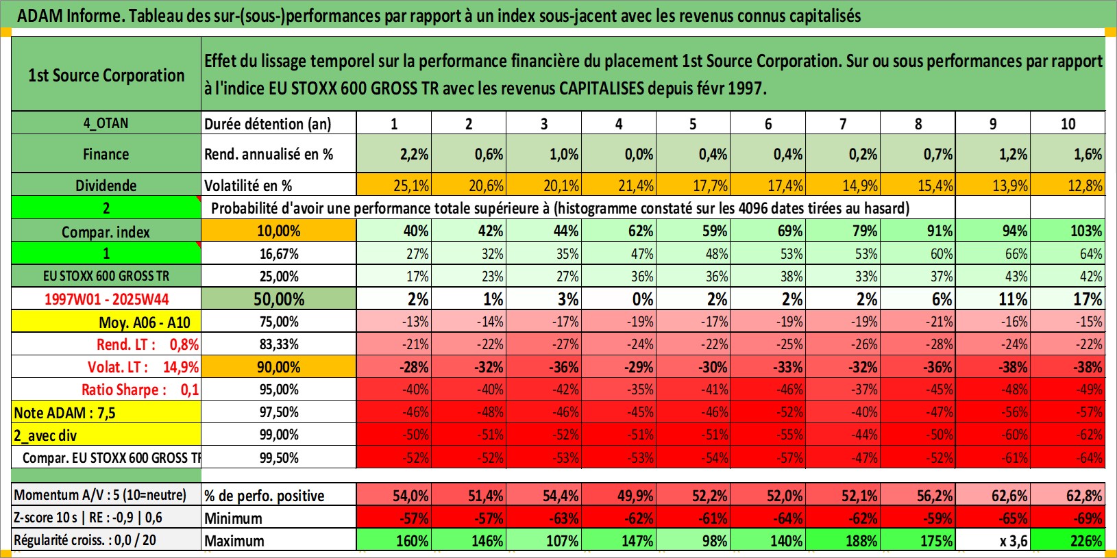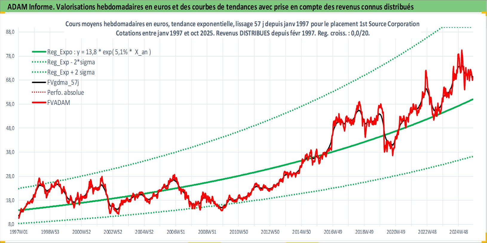 Site dédié aux investisseursPage dédiée sur site financeAnalyse des valorisations hebdomadaires de l'action 1st Source Corporation. Cet actif est cote en USD. Les valorisations sont en contrevaleur EURO et couvrent les semaines 1997W01 a 2025W44. Les revenus de cet actif financier sont pris en compte depuis la semaine 1997W06. La note ESG de cet actif n'est pas connue.