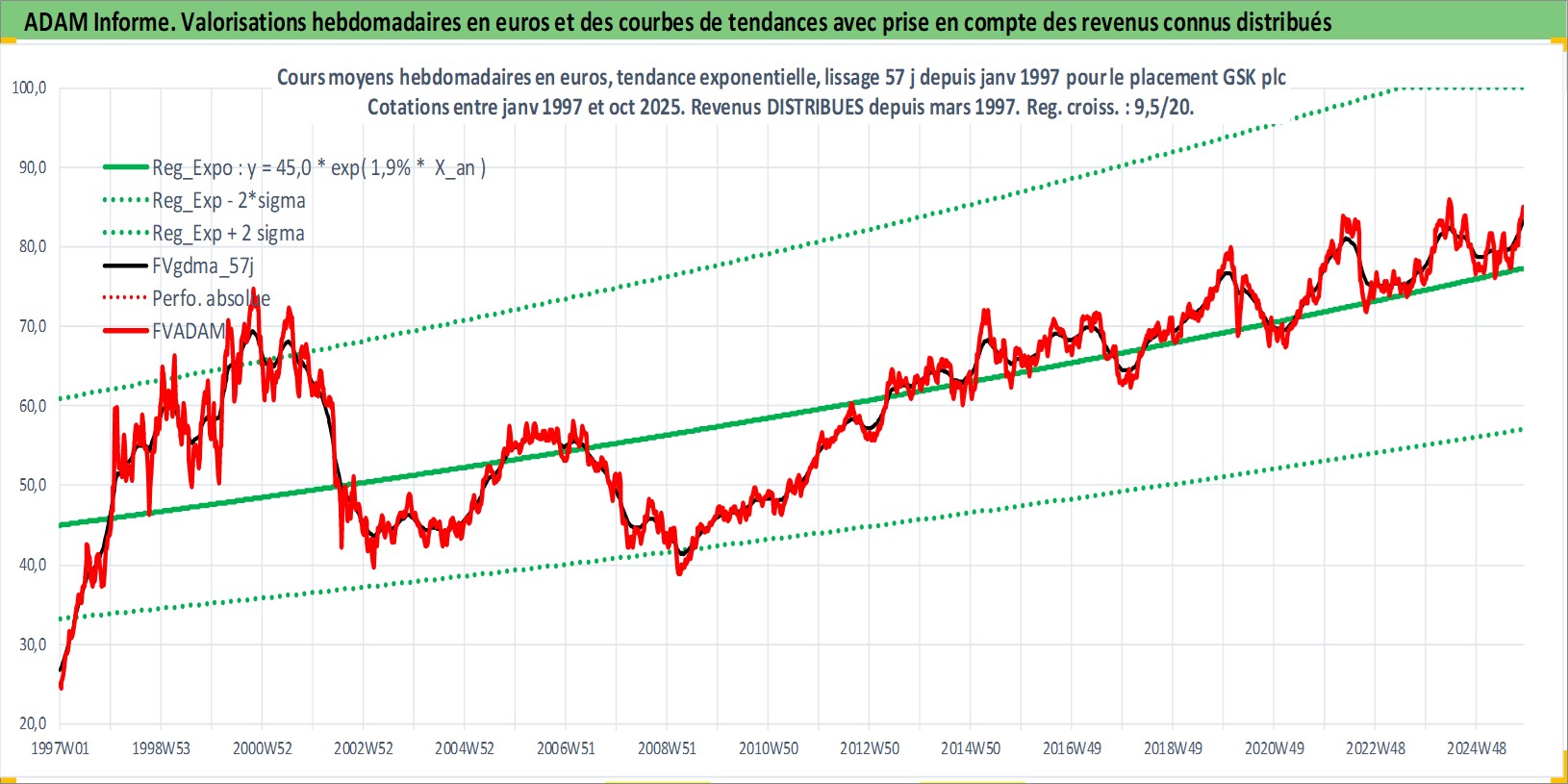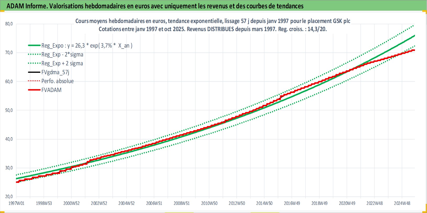 Site dédié aux investisseursPage dédiée sur site financeAnalyse des valorisations hebdomadaires de l'action GSK plc. Cet actif est cote en USD. Les valorisations sont en contrevaleur EURO et couvrent les semaines 1997W01 a 2025W44. Les revenus de cet actif financier sont pris en compte depuis la semaine 1997W12. La note ESG de cet actif n'est pas connue.