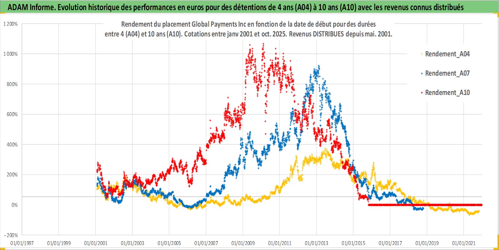 Site dédié aux investisseursPage dédiée sur site financeAnalyse des valorisations hebdomadaires de l'action Global Payments Inc. Cet actif est cote en USD. Les valorisations sont en contrevaleur EURO et couvrent les semaines 2001W03 a 2025W44. Les revenus de cet actif financier sont pris en compte depuis la semaine 2001W20. La note globale ESG de cet actif est estimee a 11.0 (apres rebasage entre 0 et 20).