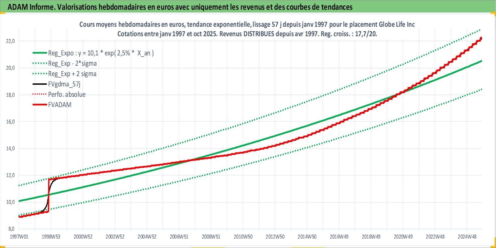 Site dédié aux investisseursPage dédiée sur site financeAnalyse des valorisations hebdomadaires de l'action Globe Life Inc. Cet actif est cote en USD. Les valorisations sont en contrevaleur EURO et couvrent les semaines 1997W01 a 2025W44. Les revenus de cet actif financier sont pris en compte depuis la semaine 1997W14. La note globale ESG de cet actif est estimee a 10.0 (apres rebasage entre 0 et 20).