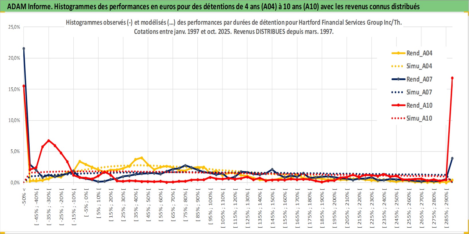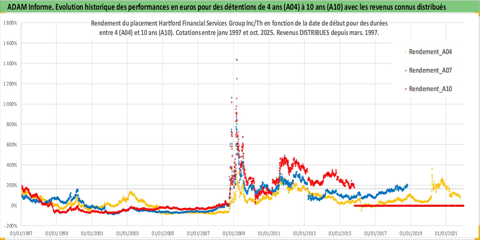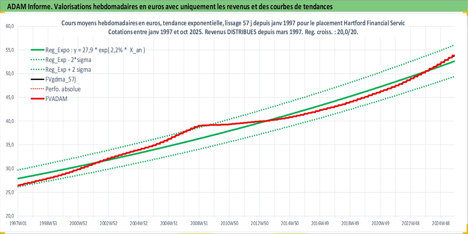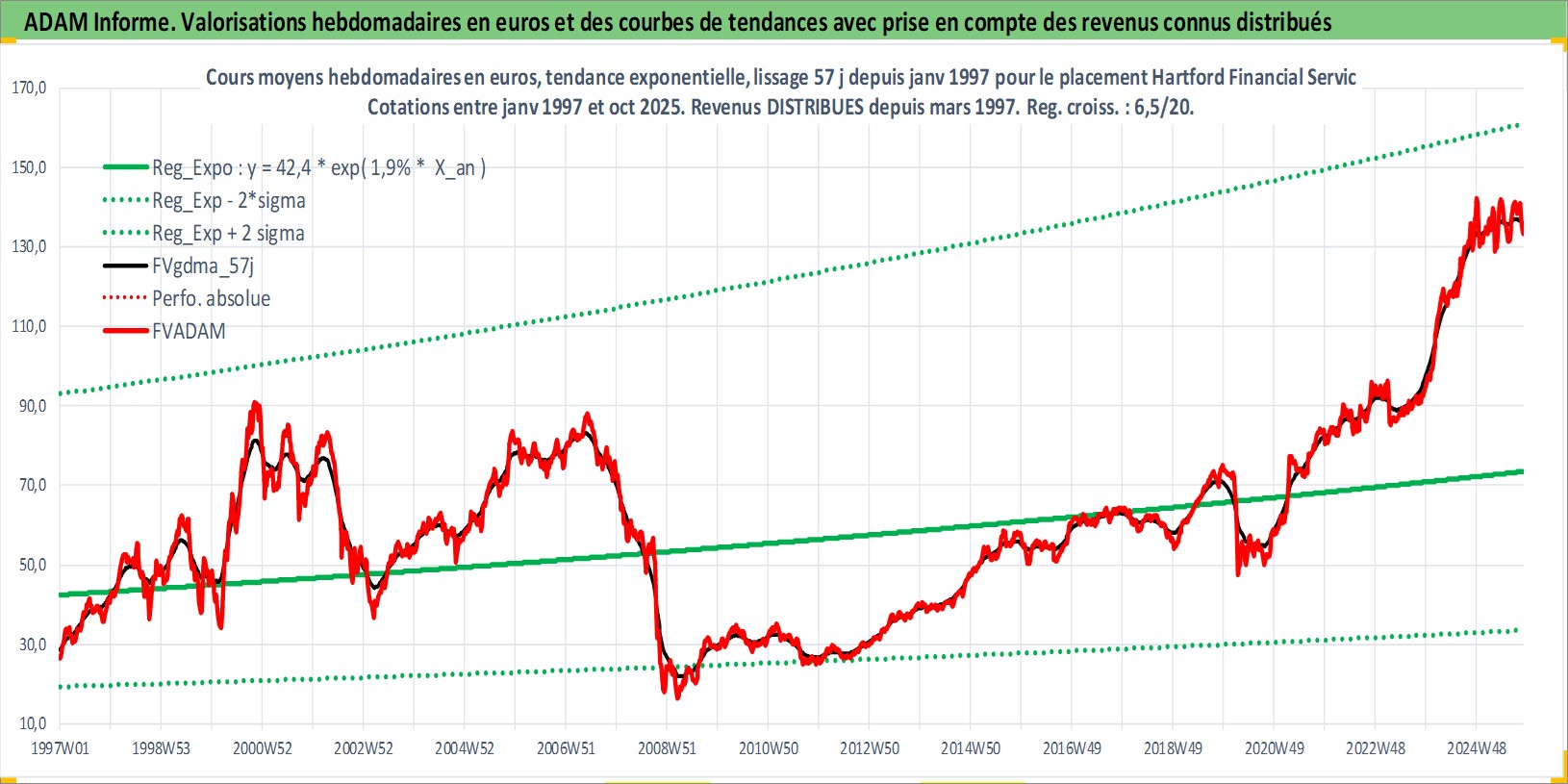 Site dédié aux investisseursPage dédiée sur site financeAnalyse des valorisations hebdomadaires de l'action Hartford Financial Services Group Inc/Th. Cet actif est cote en USD. Les valorisations sont en contrevaleur EURO et couvrent les semaines 1997W01 a 2025W44. Les revenus de cet actif financier sont pris en compte depuis la semaine 1997W10. La note globale ESG de cet actif est estimee a 13.0 (apres rebasage entre 0 et 20).