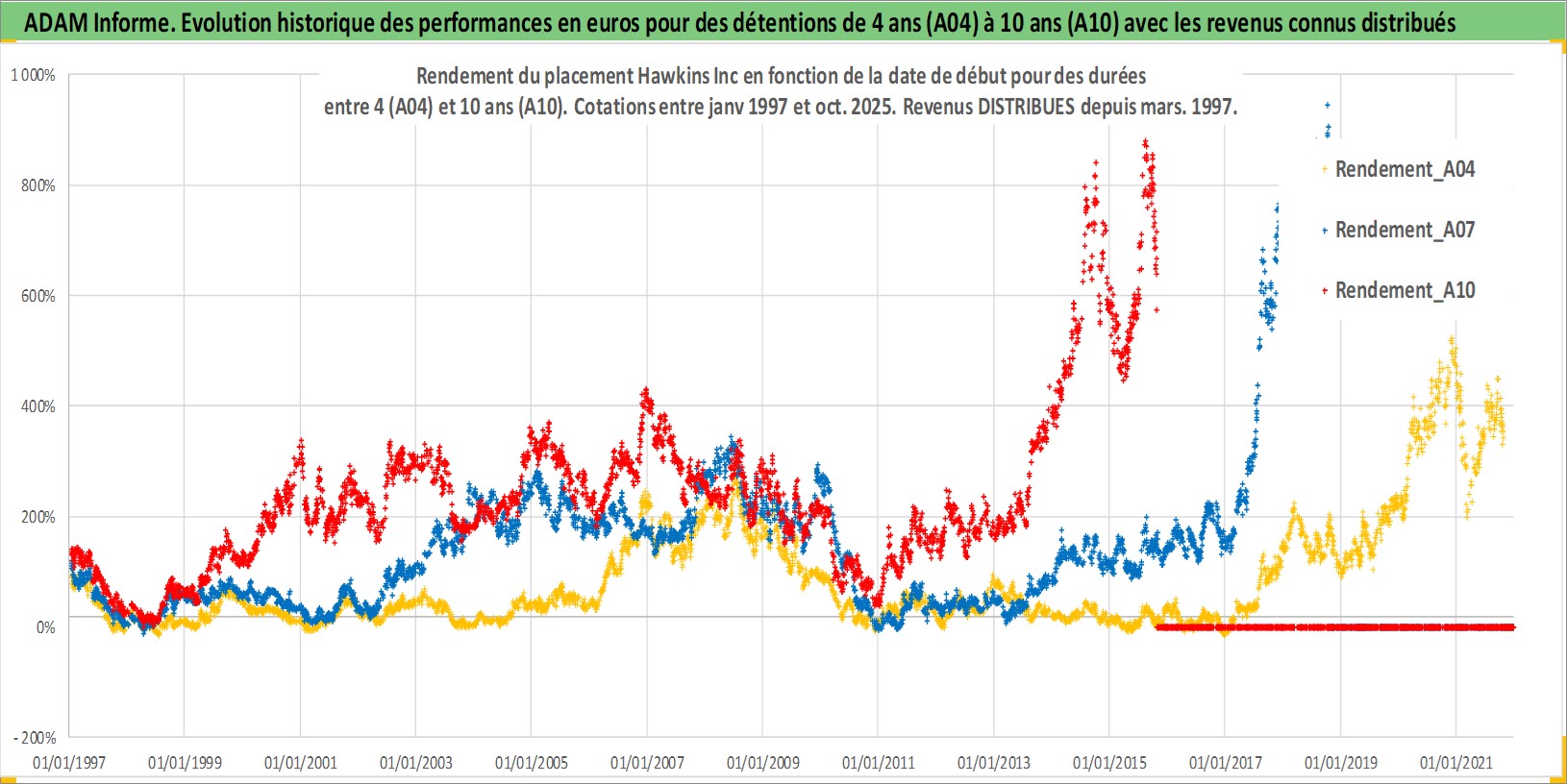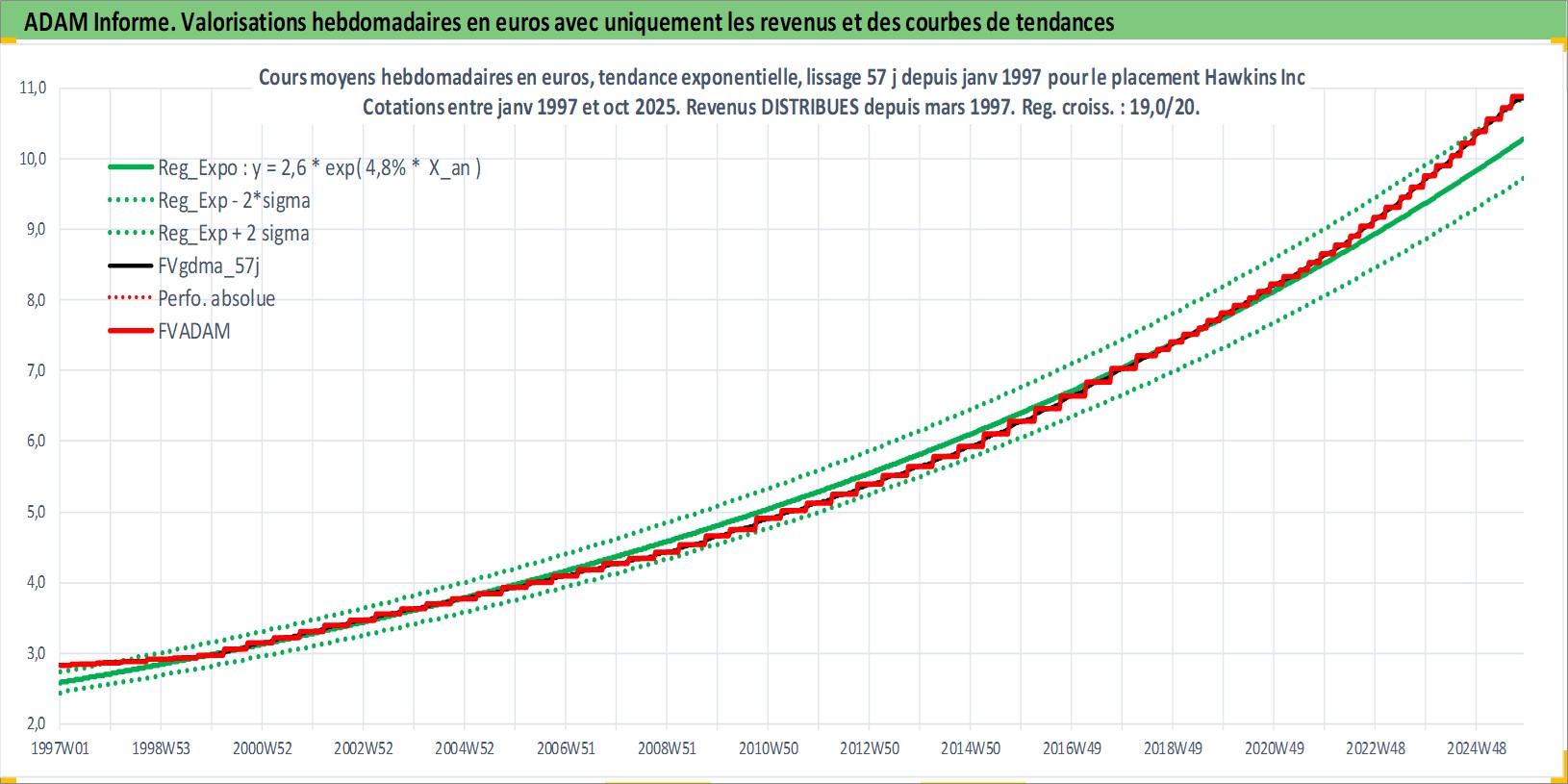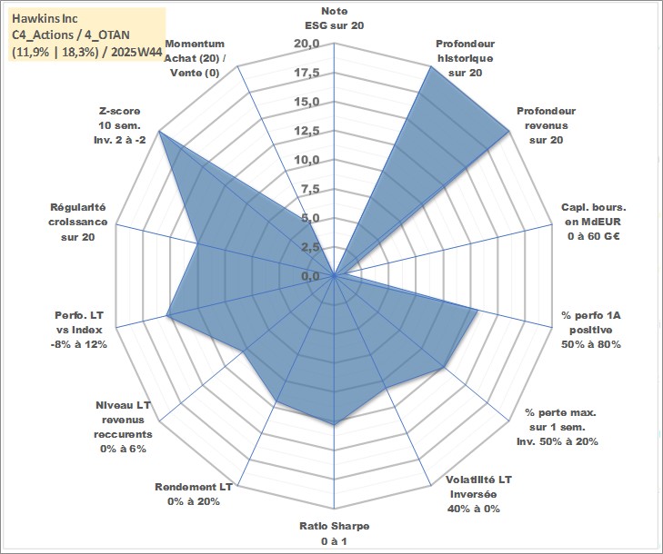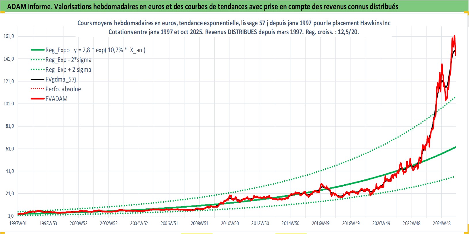 Site dédié aux investisseursPage dédiée sur site financeAnalyse des valorisations hebdomadaires de l'action Hawkins Inc. Cet actif est cote en USD. Les valorisations sont en contrevaleur EURO et couvrent les semaines 1997W01 a 2025W44. Les revenus de cet actif financier sont pris en compte depuis la semaine 1997W13. La note ESG de cet actif n'est pas connue.