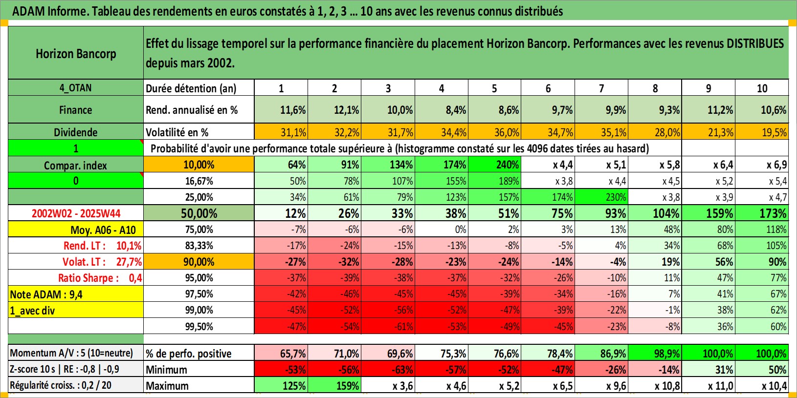 Site dédié aux investisseursPage dédiée sur site financeAnalyse des valorisations hebdomadaires de l'action Horizon Bancorp. Cet actif est cote en USD. Les valorisations sont en contrevaleur EURO et couvrent les semaines 2002W02 a 2025W44. Les revenus de cet actif financier sont pris en compte depuis la semaine 2002W13. La note ESG de cet actif n'est pas connue.