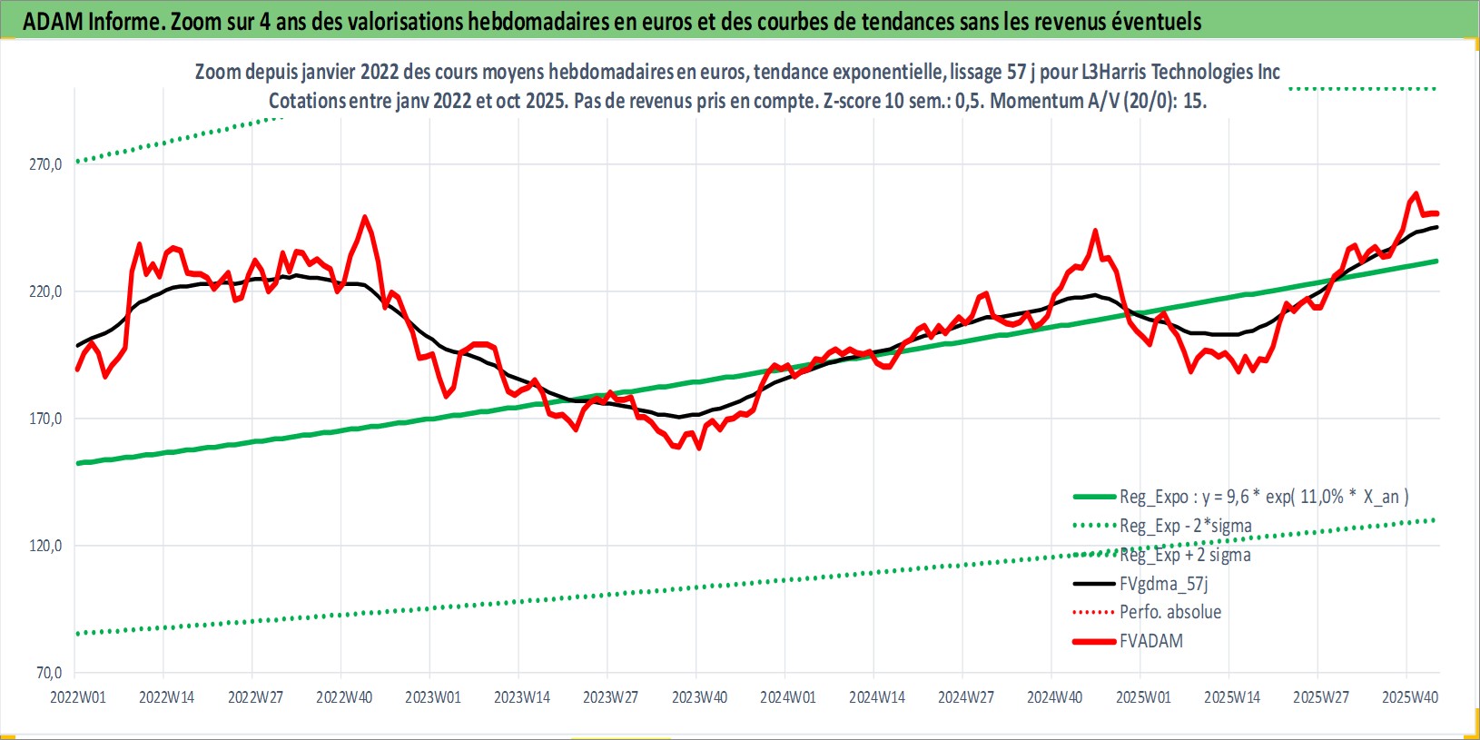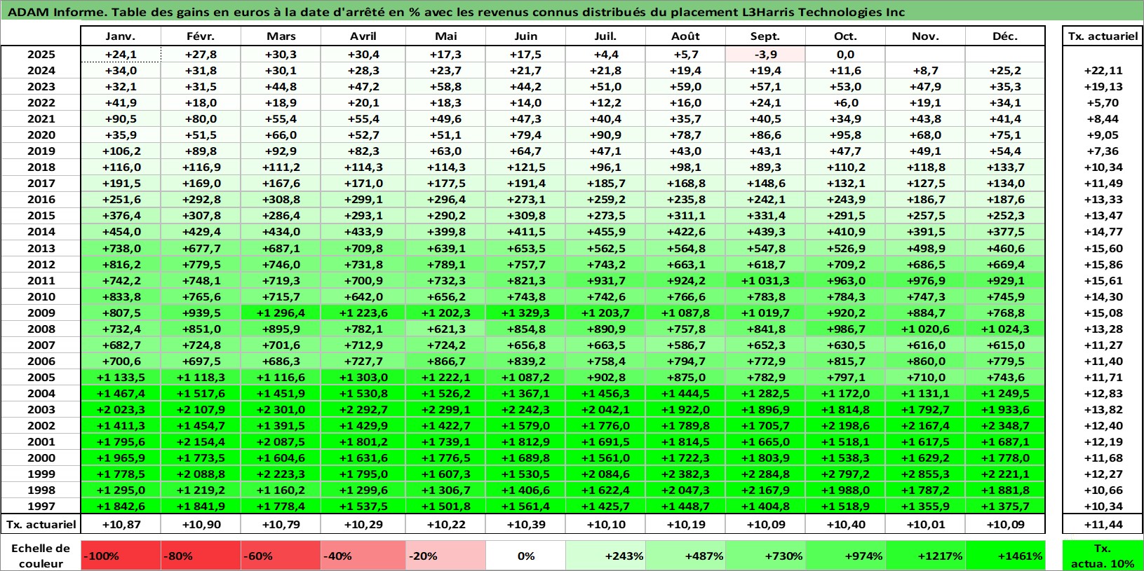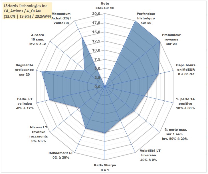 Site dédié aux investisseursPage dédiée sur site financeAnalyse des valorisations hebdomadaires de l'action L3Harris Technologies Inc. Cet actif est cote en USD. Les valorisations sont en contrevaleur EURO et couvrent les semaines 1997W01 a 2025W44. Les revenus de cet actif financier sont pris en compte depuis la semaine 1997W10. La note ESG de cet actif n'est pas connue.