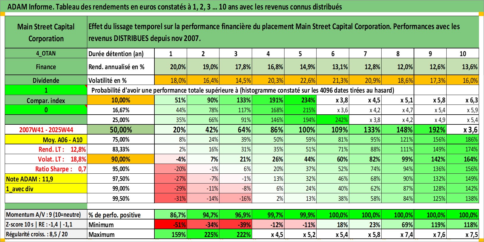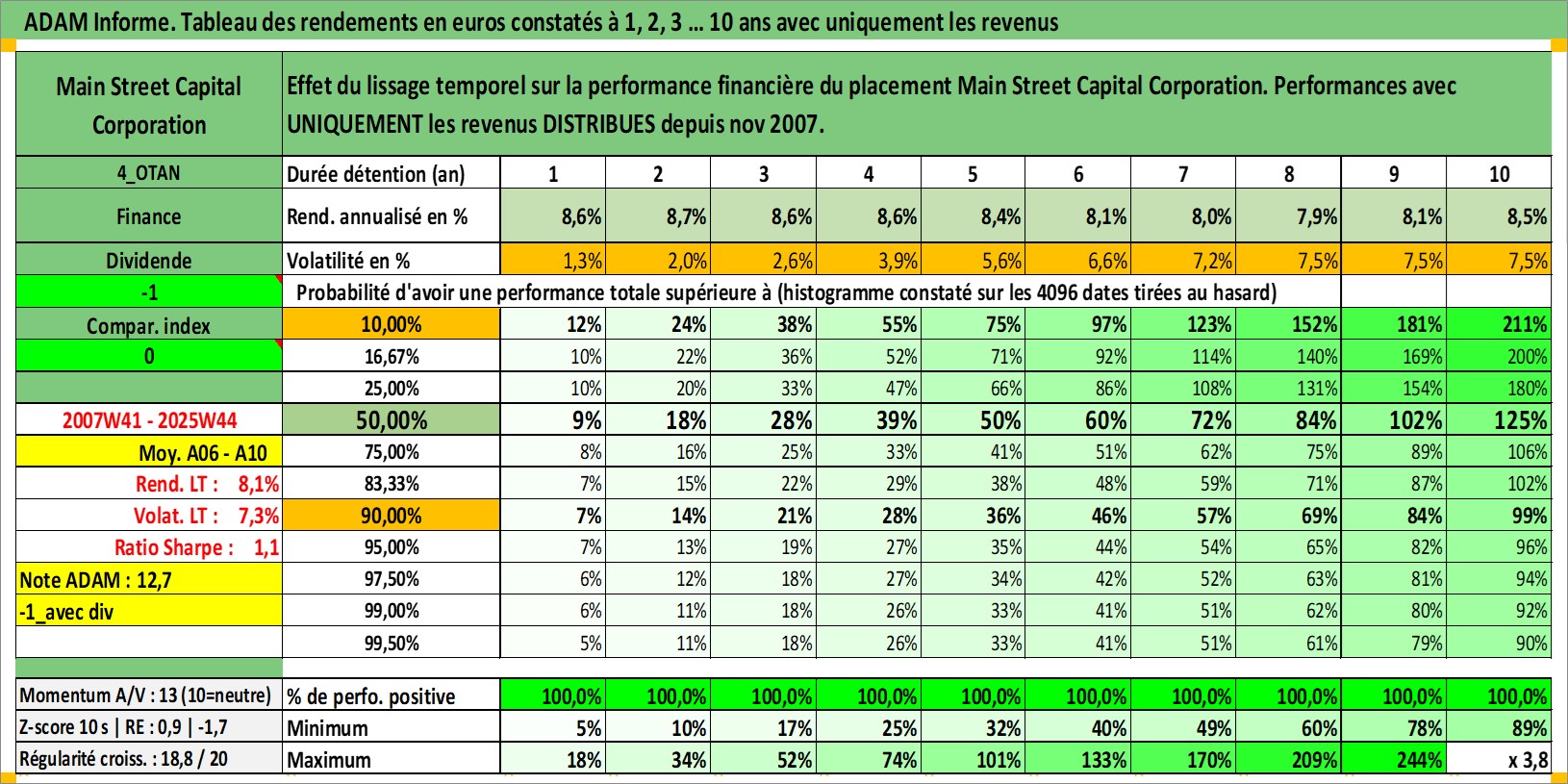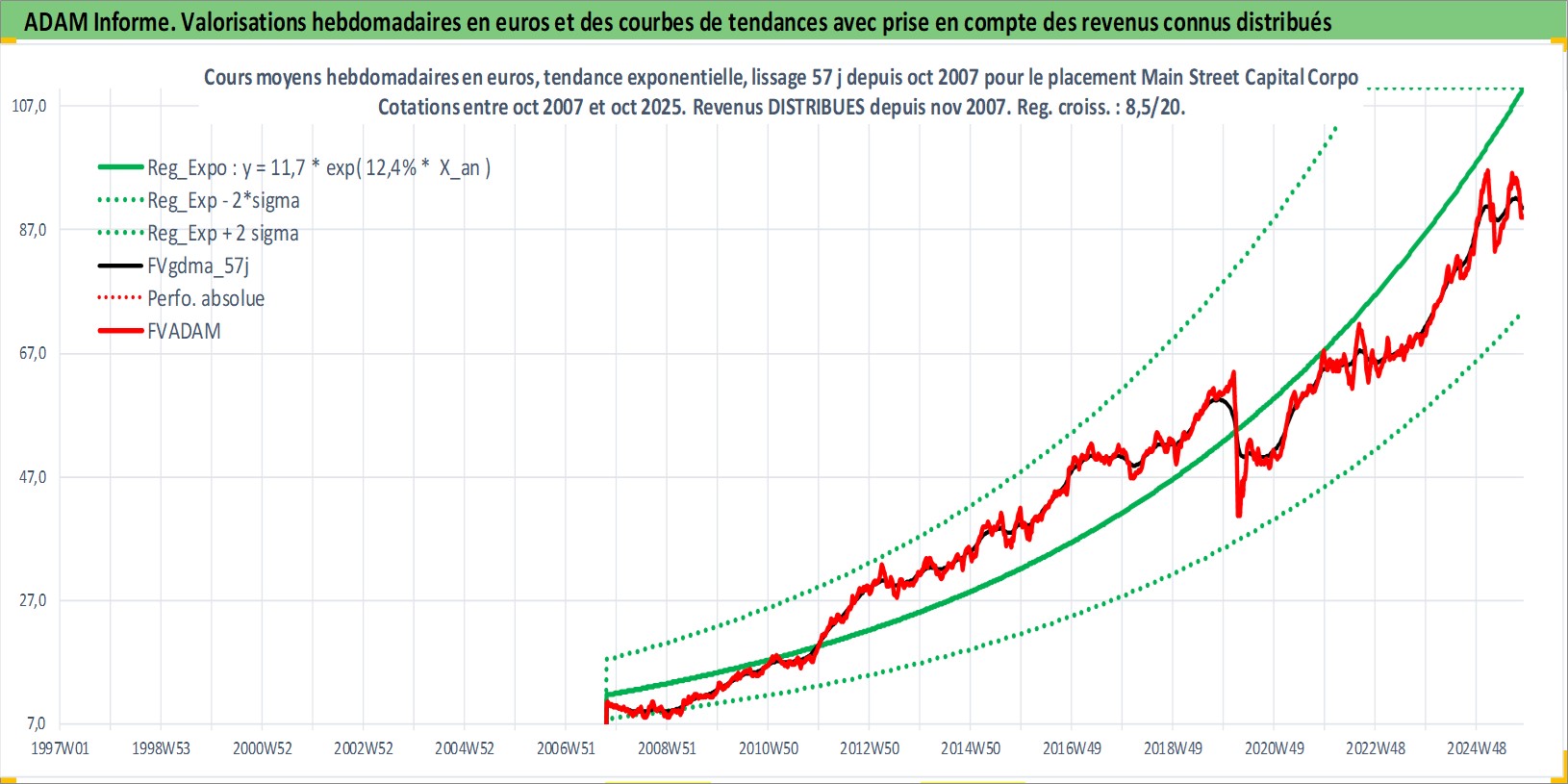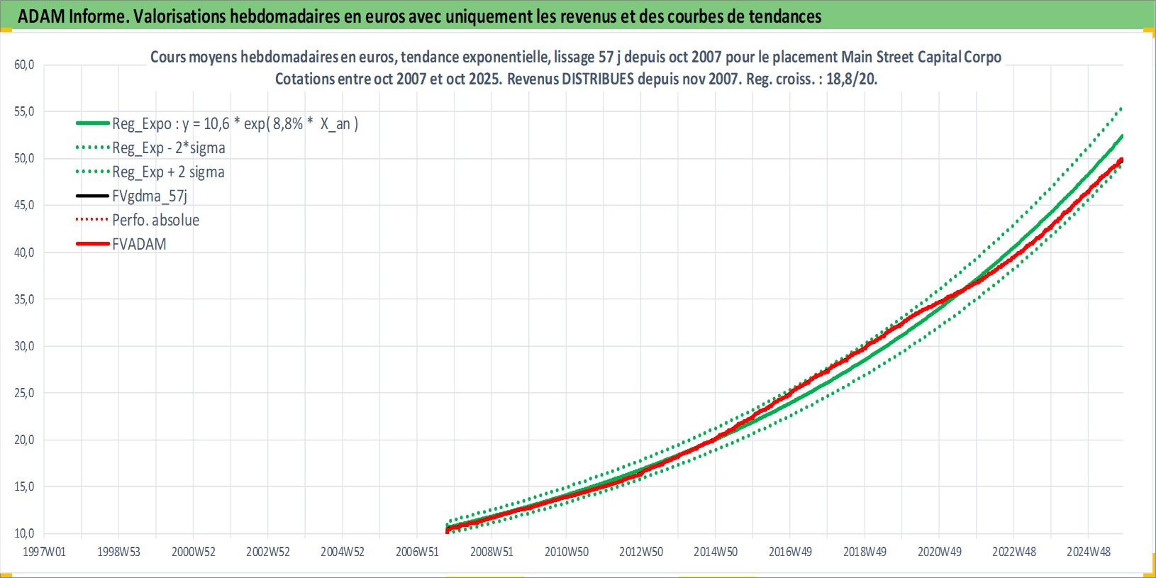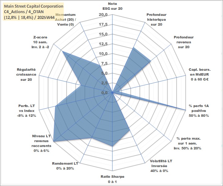 Site dédié aux investisseursPage dédiée sur site financeAnalyse des valorisations hebdomadaires de l'action Main Street Capital Corporation. Cet actif est cote en USD. Les valorisations sont en contrevaleur EURO et couvrent les semaines 2007W41 a 2025W44. Les revenus de cet actif financier sont pris en compte depuis la semaine 2007W46. La note ESG de cet actif n'est pas connue.