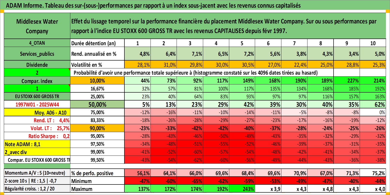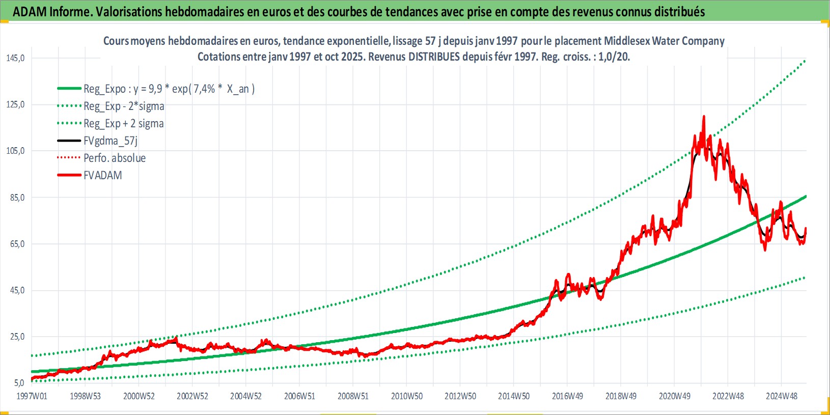 Site dédié aux investisseursPage dédiée sur site financeAnalyse des valorisations hebdomadaires de l'action Middlesex Water Company. Cet actif est cote en USD. Les valorisations sont en contrevaleur EURO et couvrent les semaines 1997W01 a 2025W44. Les revenus de cet actif financier sont pris en compte depuis la semaine 1997W07. La note ESG de cet actif n'est pas connue.
