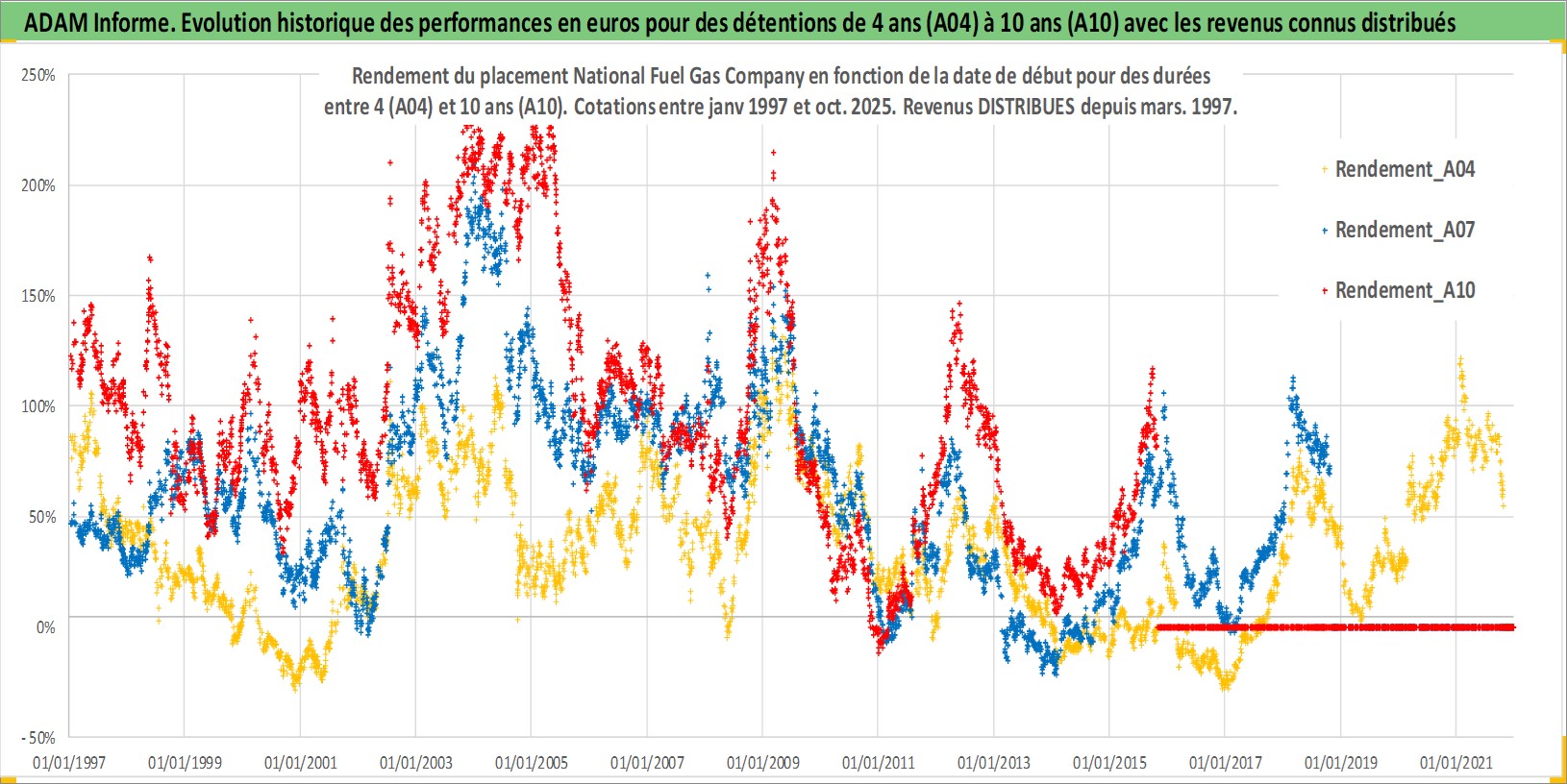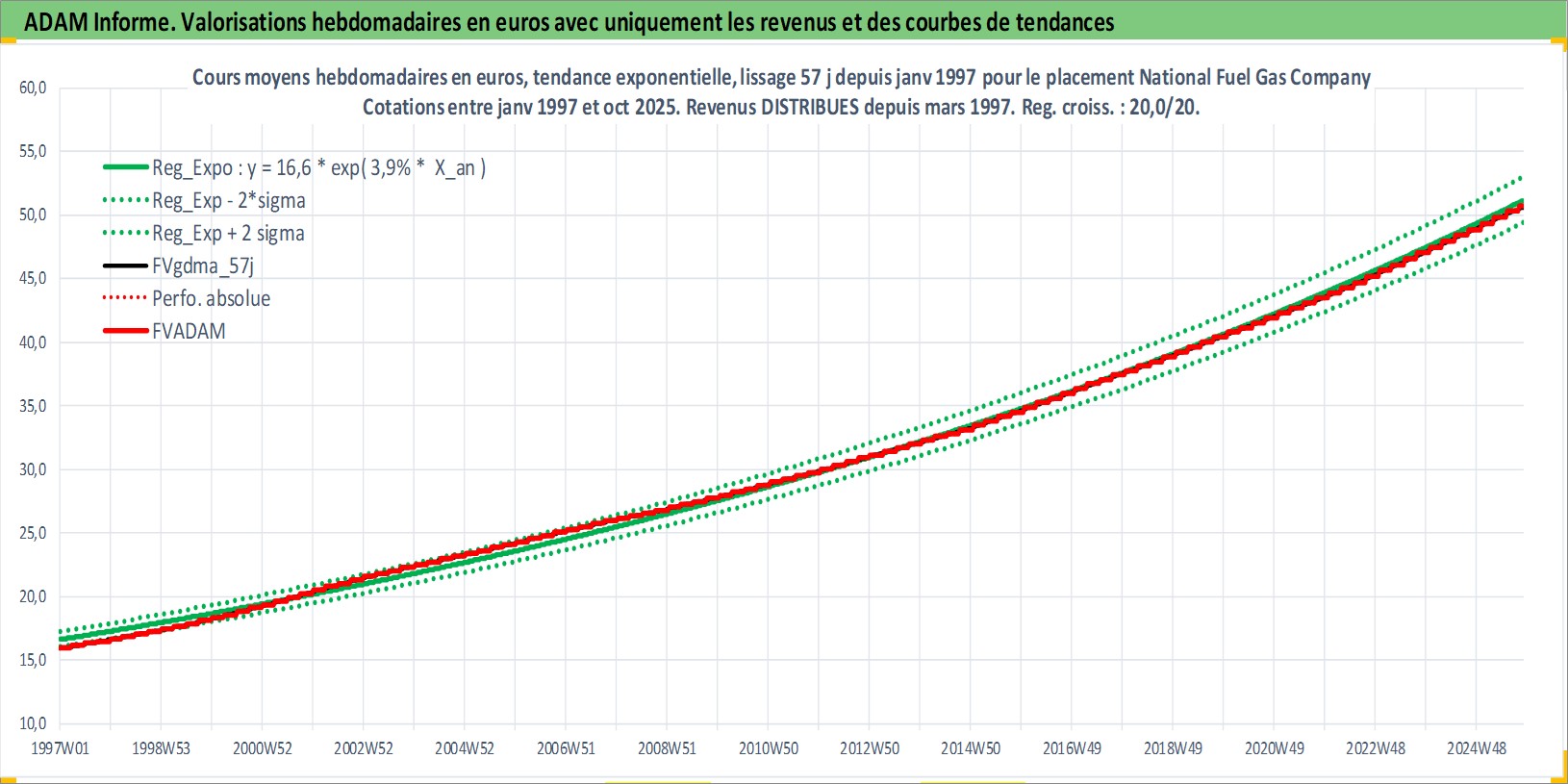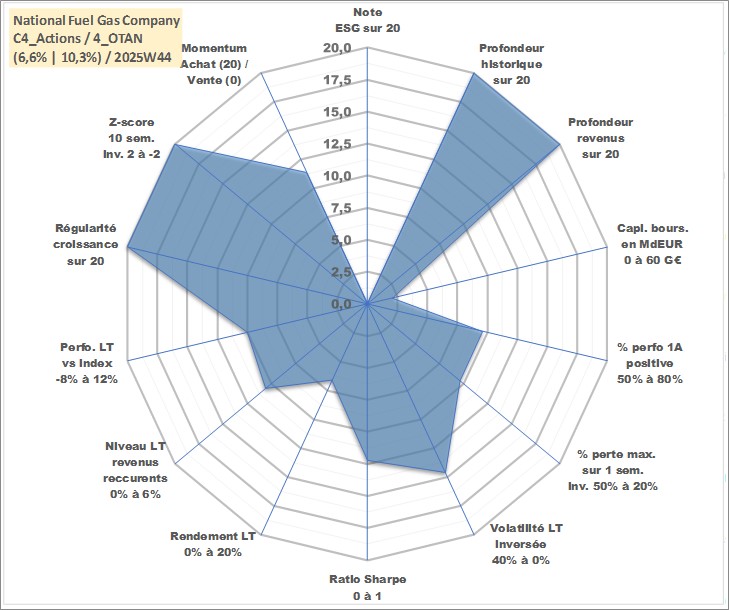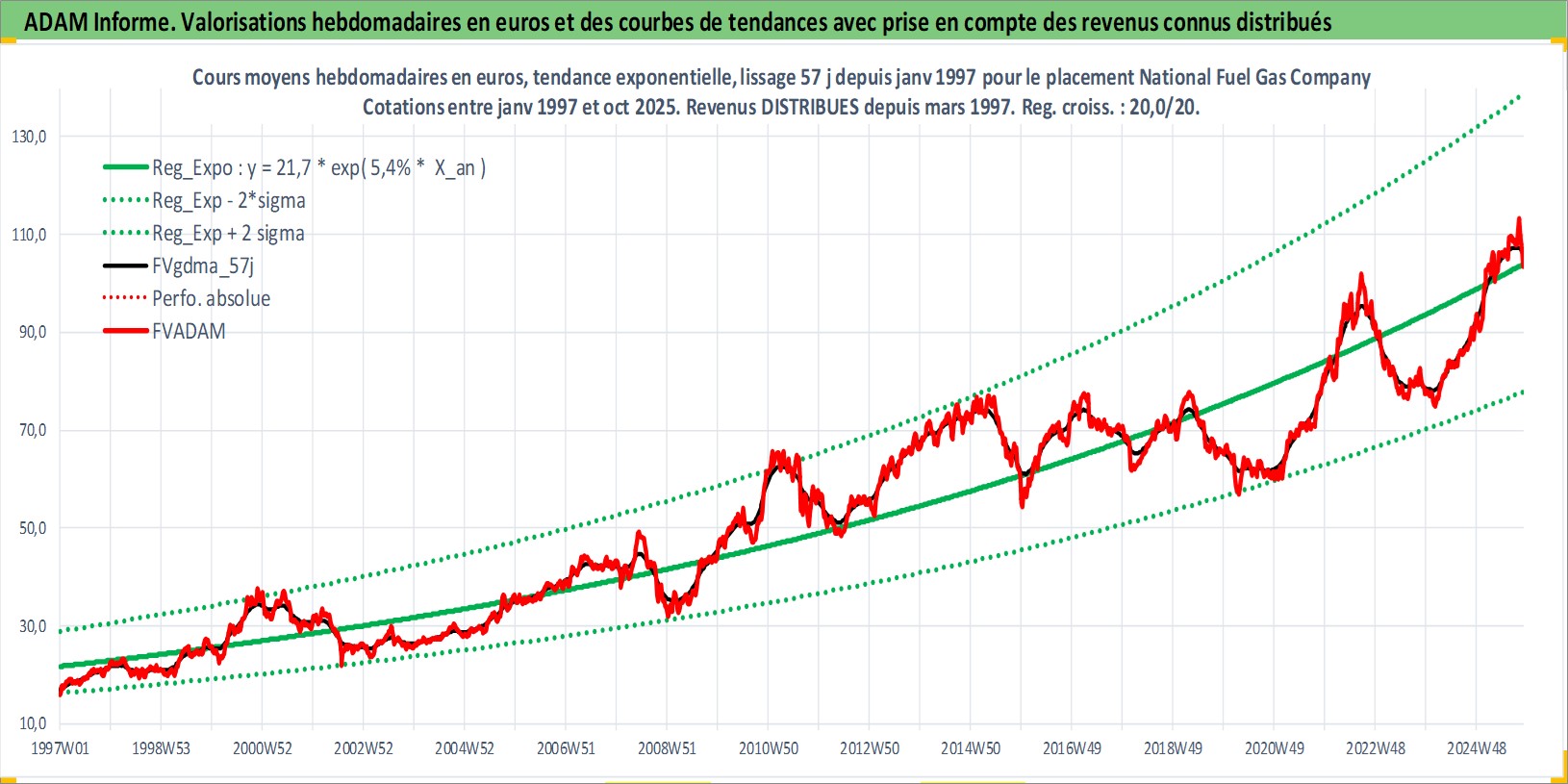Site dédié aux investisseursPage dédiée sur site financeAnalyse des valorisations hebdomadaires de l'action National Fuel Gas Company. Cet actif est cote en USD. Les valorisations sont en contrevaleur EURO et couvrent les semaines 1997W01 a 2025W44. Les revenus de cet actif financier sont pris en compte depuis la semaine 1997W13. La note ESG de cet actif n'est pas connue.