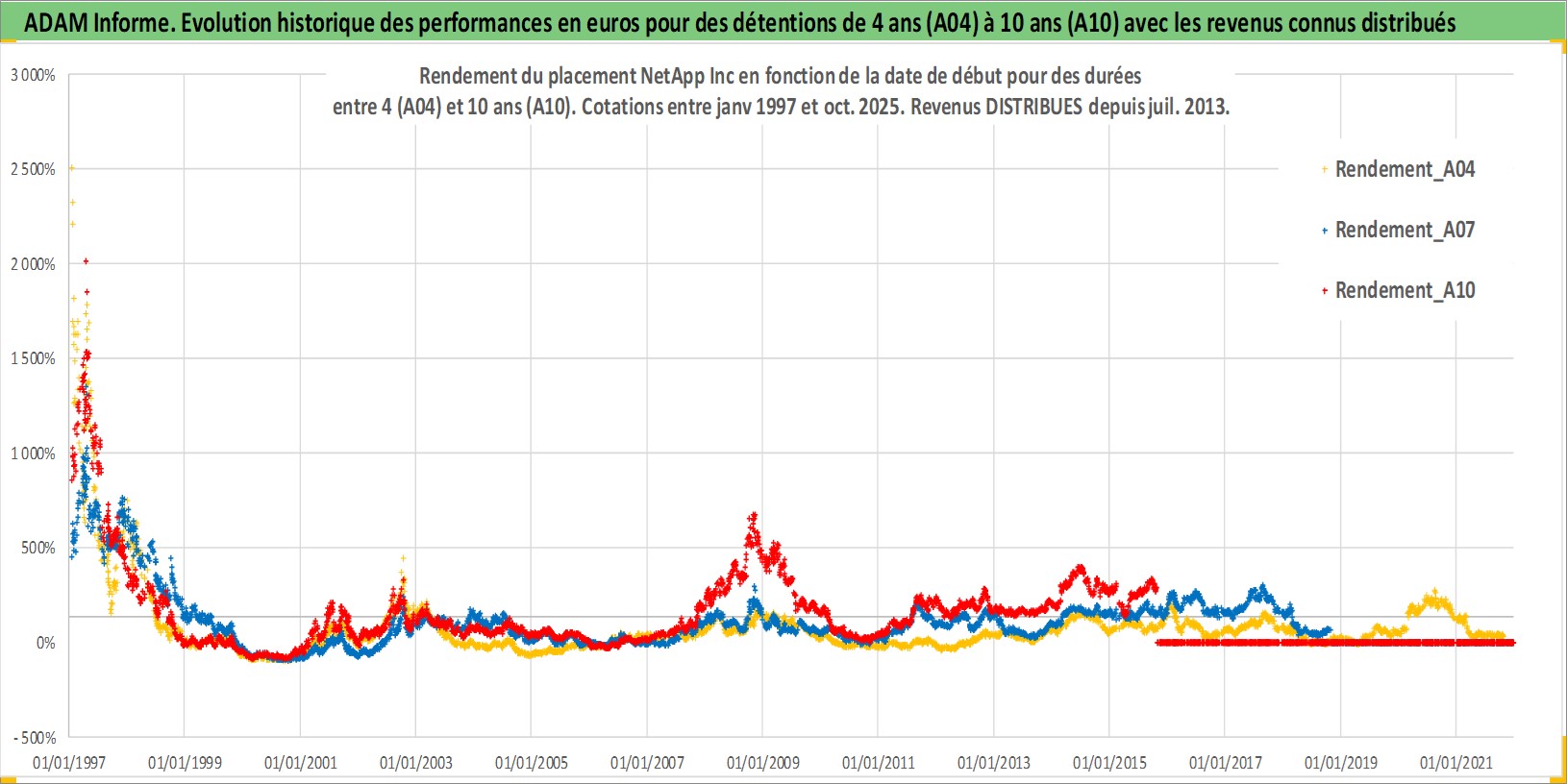 Site dédié aux investisseursPage dédiée sur site financeAnalyse des valorisations hebdomadaires de l'action NetApp Inc. Cet actif est cote en USD. Les valorisations sont en contrevaleur EURO et couvrent les semaines 1997W01 a 2025W44. Les revenus de cet actif financier sont pris en compte depuis la semaine 2013W28. La note globale ESG de cet actif est estimee a 13.0 (apres rebasage entre 0 et 20).