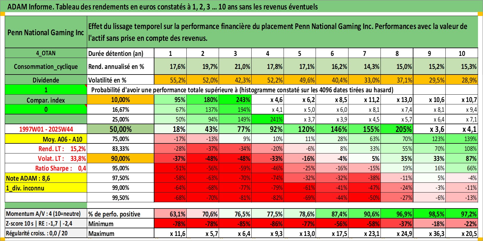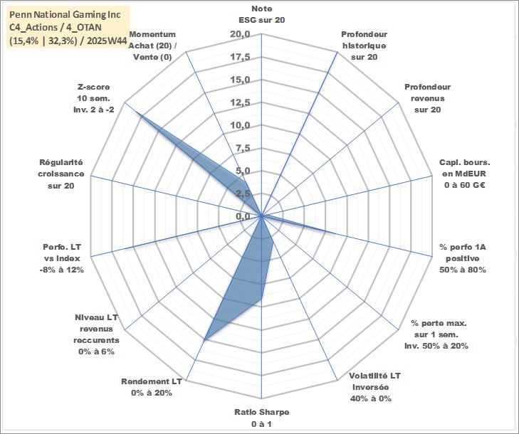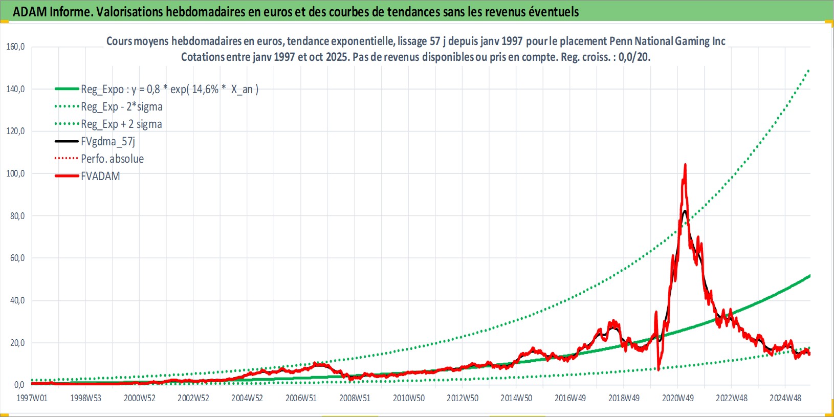 Site dédié aux investisseursPage dédiée sur site financeAnalyse des valorisations hebdomadaires de l'action Penn National Gaming Inc. Cet actif est cote en USD. Les valorisations sont en contrevaleur EURO et couvrent les semaines 1997W01 a 2025W44. Les revenus de cet actif financier ne sont pas connus car non existants ou non disponibles sur le site Yahoo Finance. La note ESG de cet actif n'est pas connue.