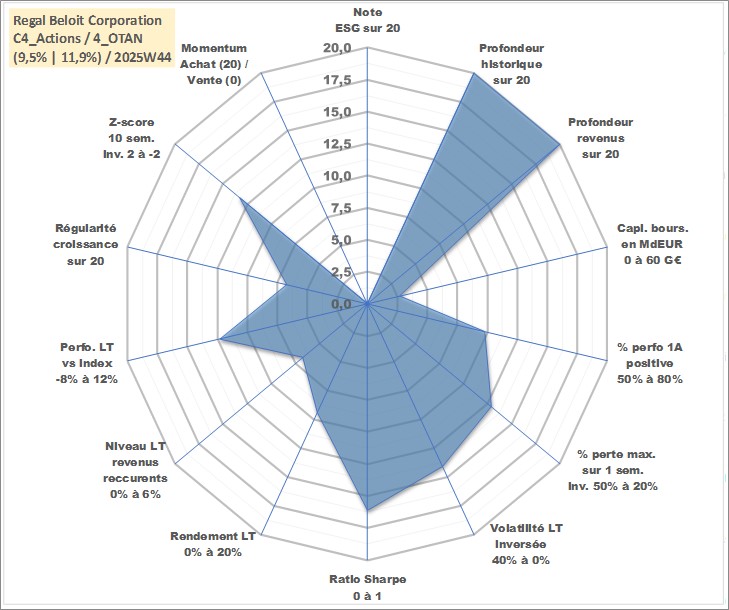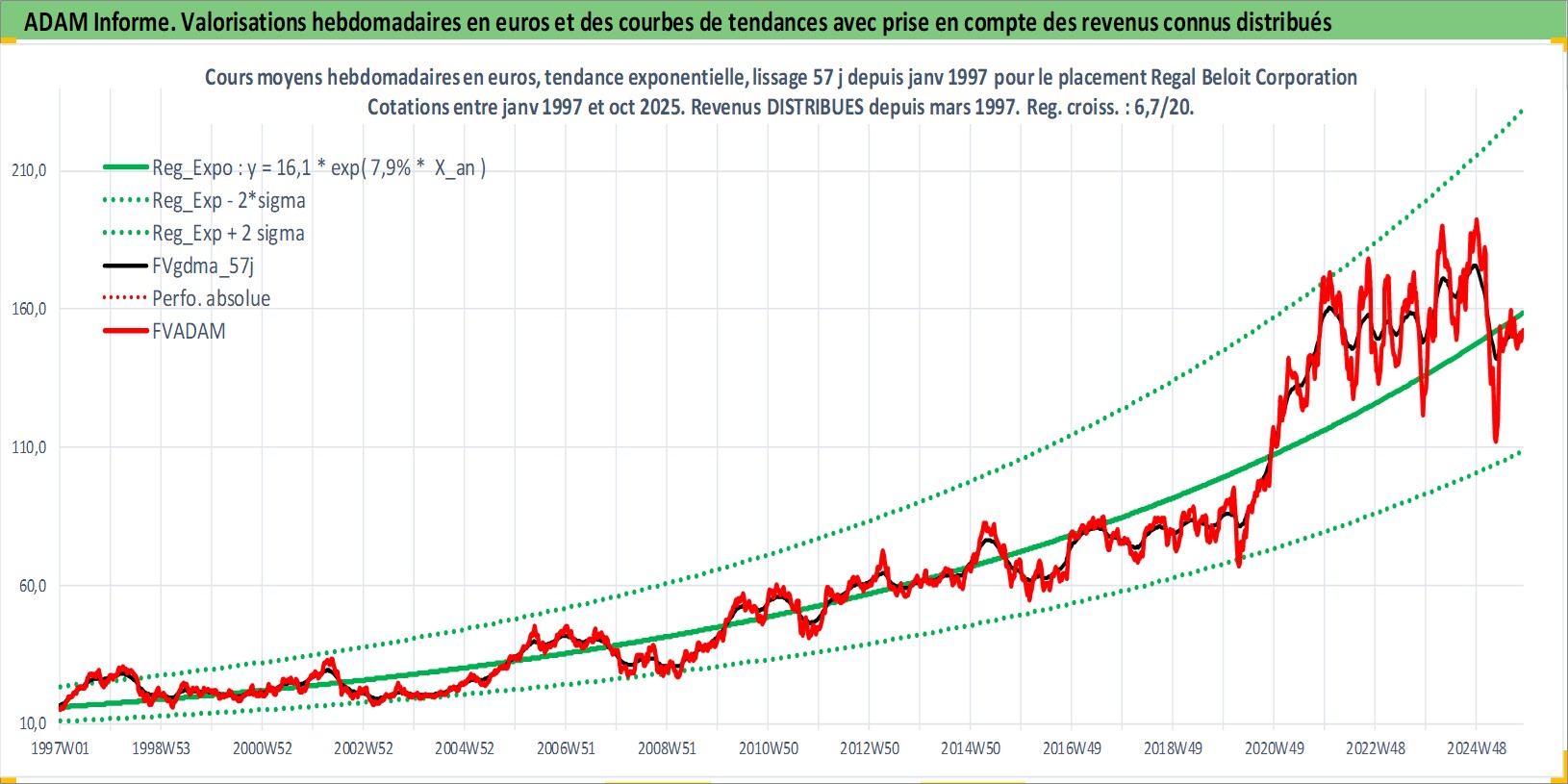 Site dédié aux investisseursPage dédiée sur site financeAnalyse des valorisations hebdomadaires de l'action Regal Beloit Corporation. Cet actif est cote en USD. Les valorisations sont en contrevaleur EURO et couvrent les semaines 1997W01 a 2025W44. Les revenus de cet actif financier sont pris en compte depuis la semaine 1997W13. La note ESG de cet actif n'est pas connue.