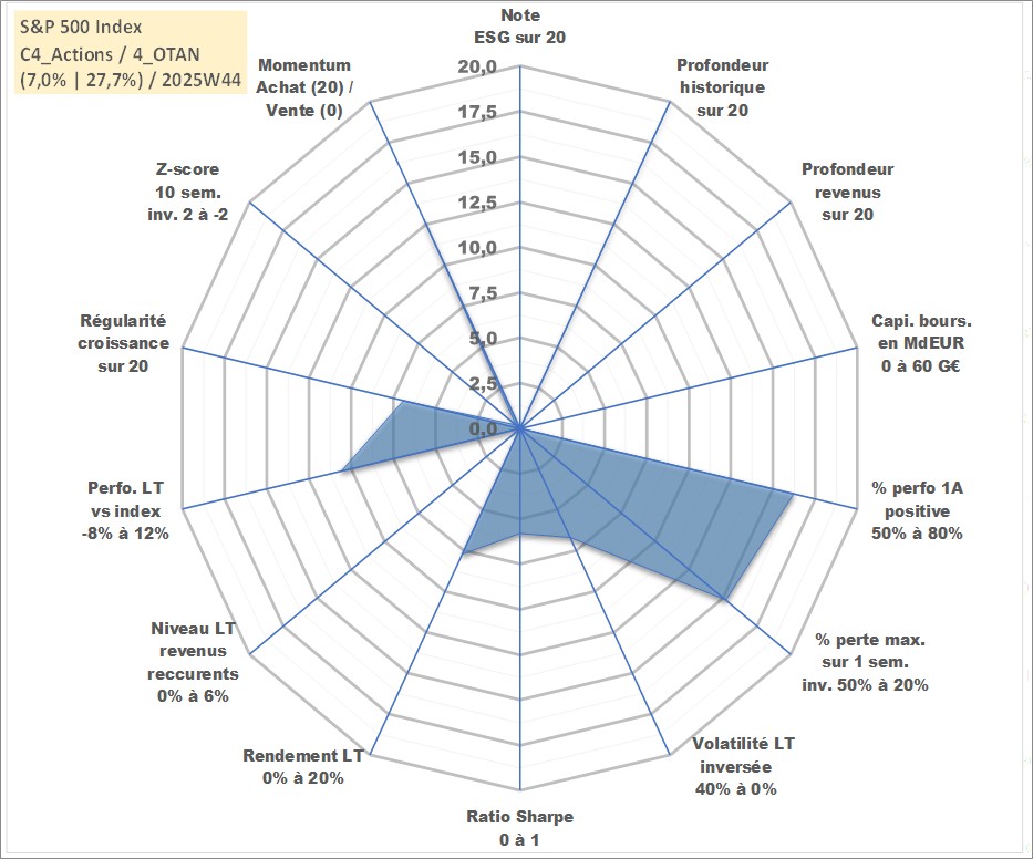 Site dédié aux investisseursPage dédiée sur site financeAnalyse des valorisations hebdomadaires de l'actif S&P 500 Index. Cet actif est cote en USD. Les valorisations sont en contrevaleur EURO et couvrent les semaines 1997W01 a 2025W44. Les revenus de cet actif financier ne sont pas connus car non existants ou non disponibles sur le site Yahoo Finance. La note ESG de cet actif n'est pas connue.