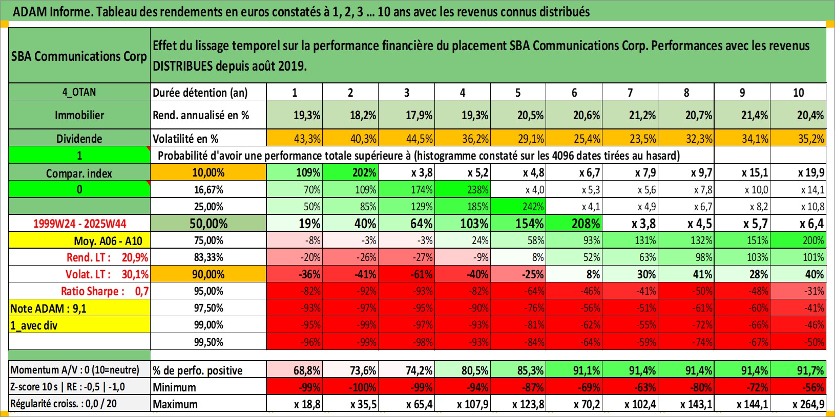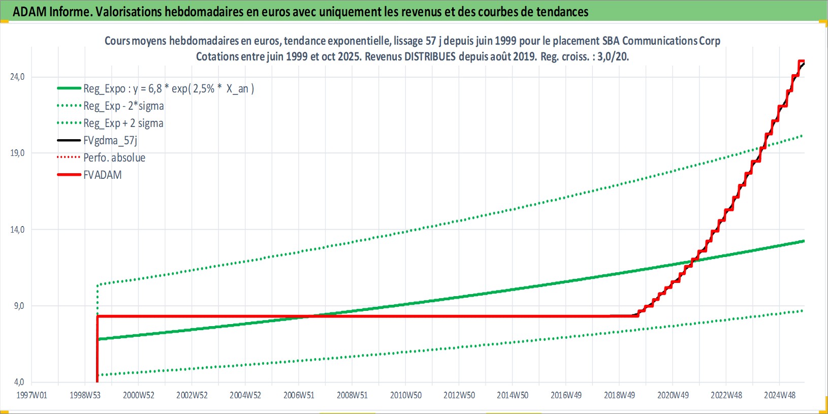 Site dédié aux investisseursPage dédiée sur site financeAnalyse des valorisations hebdomadaires de l'action SBA Communications Corp. Cet actif est cote en USD. Les valorisations sont en contrevaleur EURO et couvrent les semaines 1999W24 a 2025W44. Les revenus de cet actif financier sont pris en compte depuis la semaine 2019W35. La note globale ESG de cet actif est estimee a 15.0 (apres rebasage entre 0 et 20).
