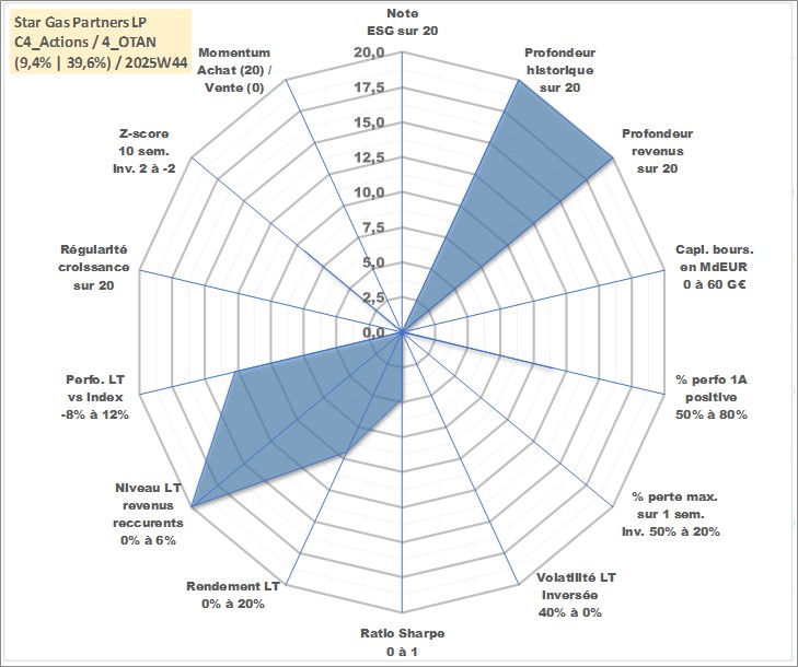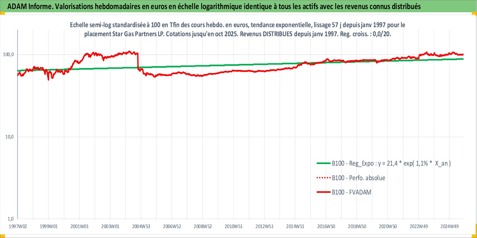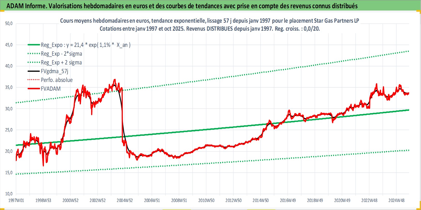 Site dédié aux investisseursPage dédiée sur site financeAnalyse des valorisations hebdomadaires de l'action Star Gas Partners LP. Cet actif est cote en USD. Les valorisations sont en contrevaleur EURO et couvrent les semaines 1997W01 a 2025W44. Les revenus de cet actif financier sont pris en compte depuis la semaine 1997W05. La note ESG de cet actif n'est pas connue.