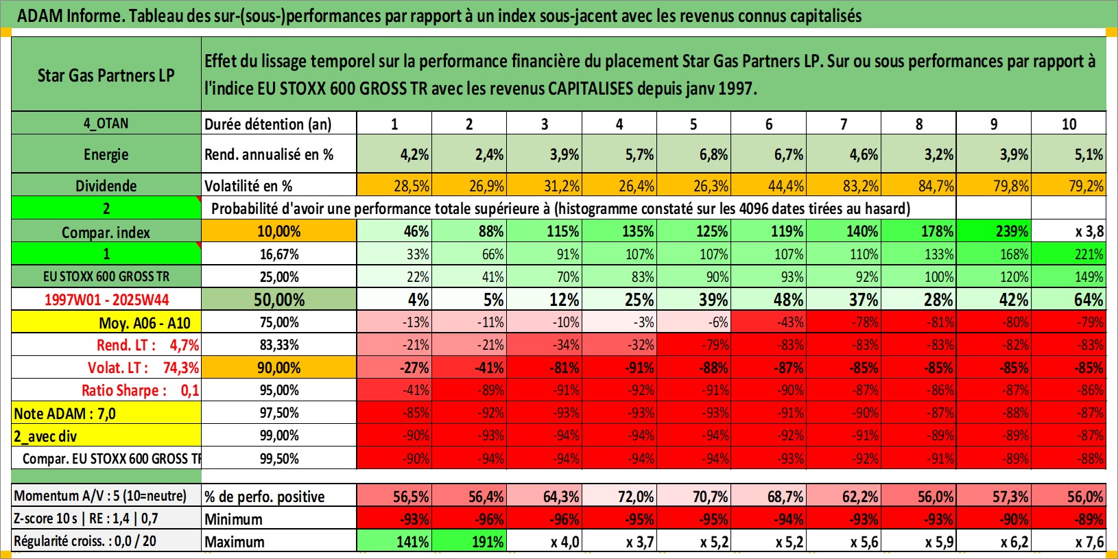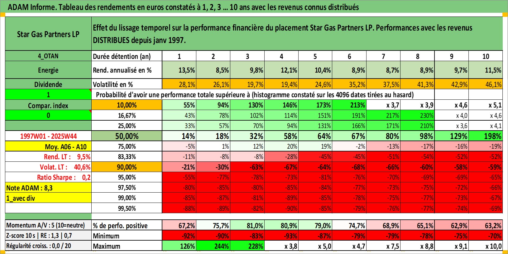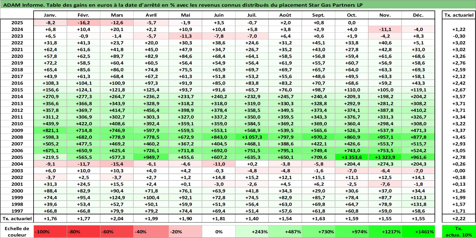 Site dédié aux investisseursPage dédiée sur site financeAnalyse des valorisations hebdomadaires de l'action Star Gas Partners LP. Cet actif est cote en USD. Les valorisations sont en contrevaleur EURO et couvrent les semaines 1997W01 a 2025W44. Les revenus de cet actif financier sont pris en compte depuis la semaine 1997W05. La note ESG de cet actif n'est pas connue.