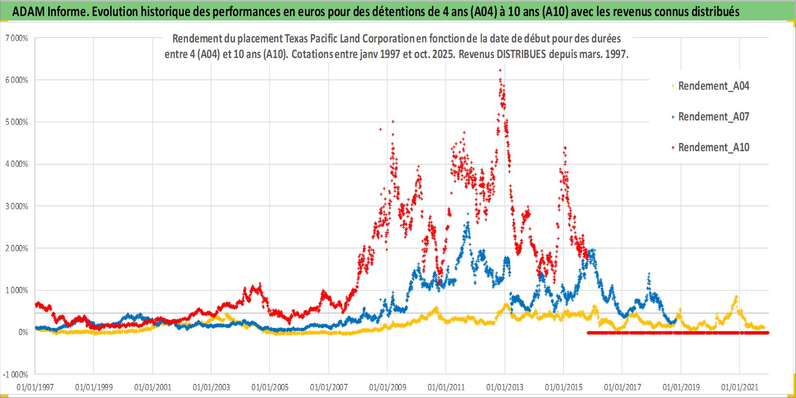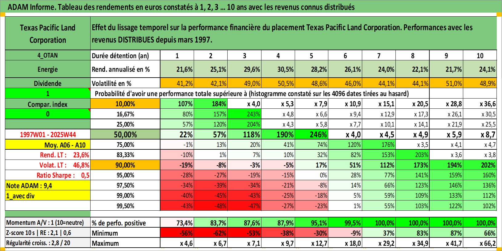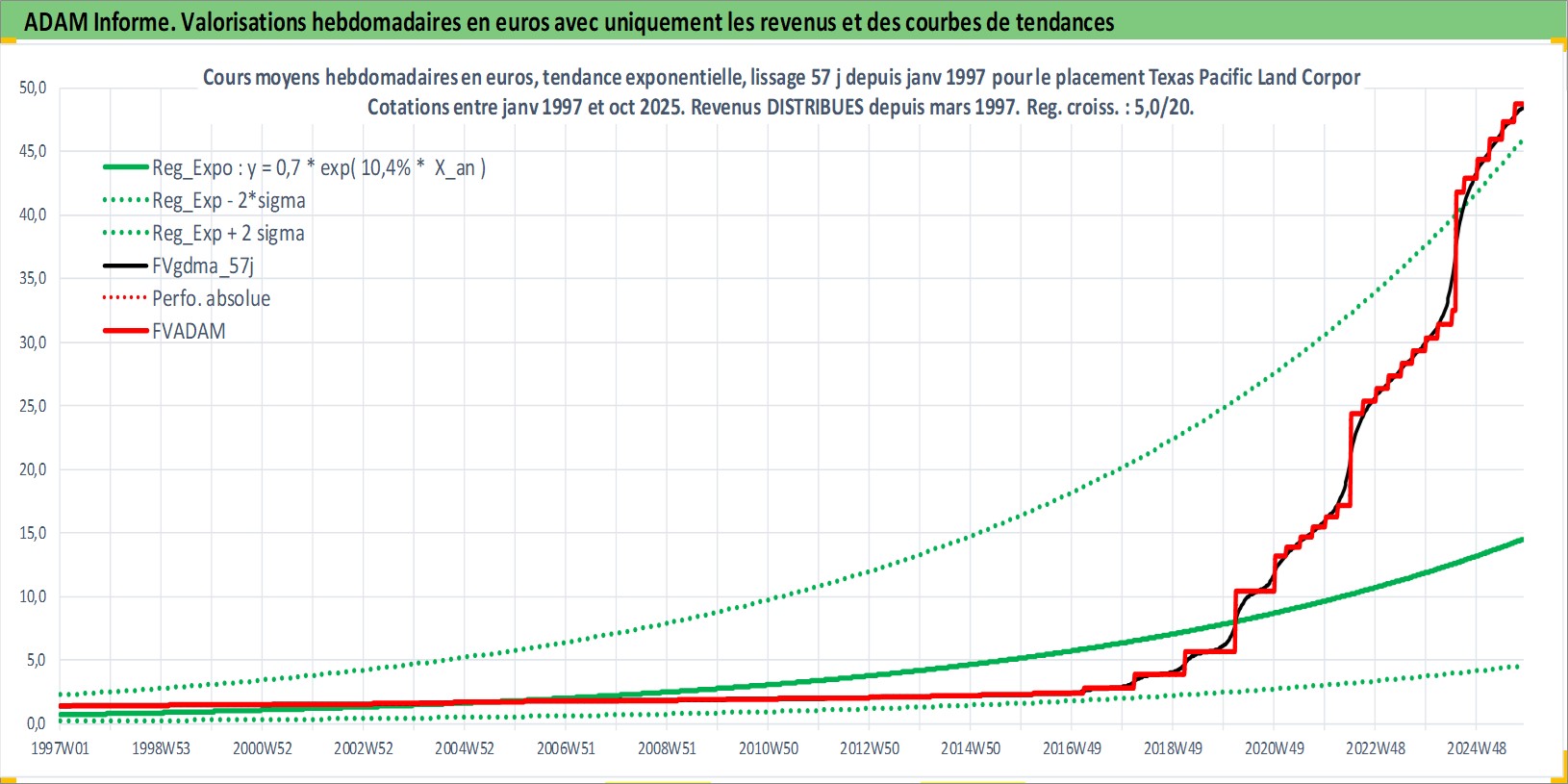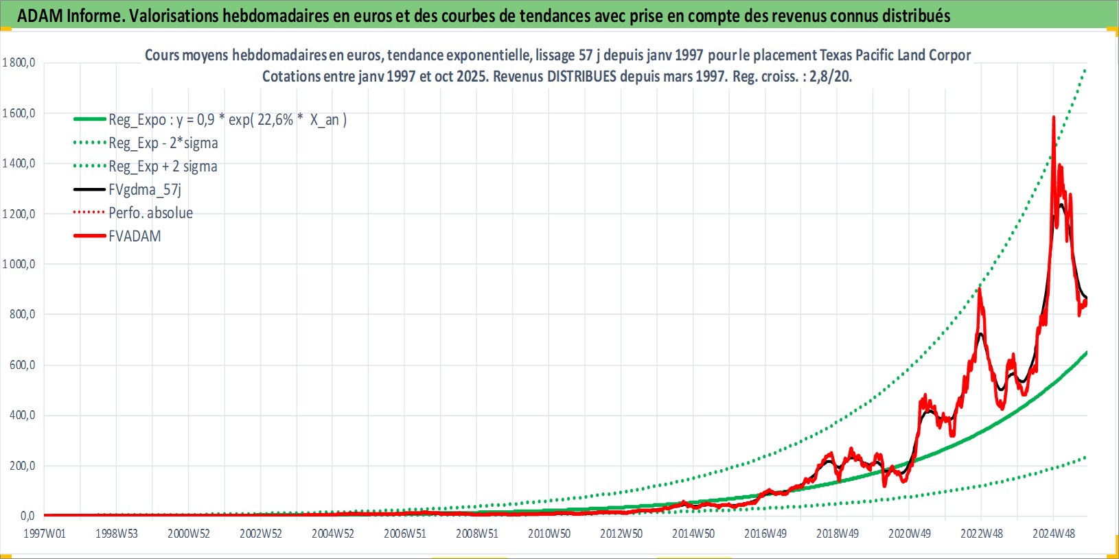 Site dédié aux investisseursPage dédiée sur site financeAnalyse des valorisations hebdomadaires de l'action Texas Pacific Land Corporation. Cet actif est cote en USD. Les valorisations sont en contrevaleur EURO et couvrent les semaines 1997W01 a 2025W44. Les revenus de cet actif financier sont pris en compte depuis la semaine 1997W10. La note ESG de cet actif n'est pas connue.